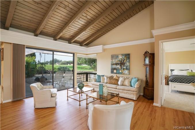Ideal location in the exclusive Queen’s Gate Community, this single story, 3bed/2bath, well maintained, home is beautifully situated near the 16th hole of Hawaii Kai Golf Course & has only one neighboring house next to it. Graced with high ceilings & large windows for plenty of natural light & cool breezes, this L-shaped floor plan is centered around a spacious great room & dining area that leads outside to a relaxing lanai with spectacular golf course views that are great for entertaining guests. Pride of ownership permeates throughout this property, featuring 20 PV panels, solar water heater, sprinkler system and a low maintenance garden. Minutes from Sandy Beach, hiking, Koko Crater Stables, golfing, shopping & more. Move in ready this home can be sold fully furnished!