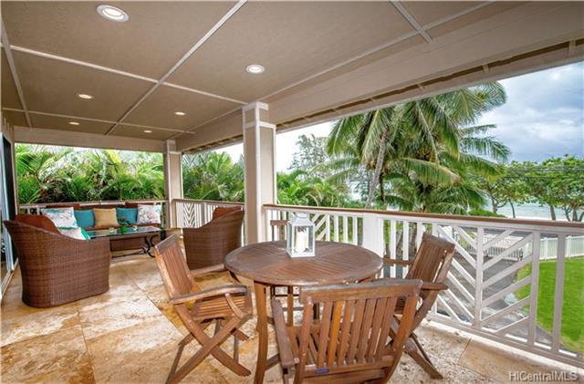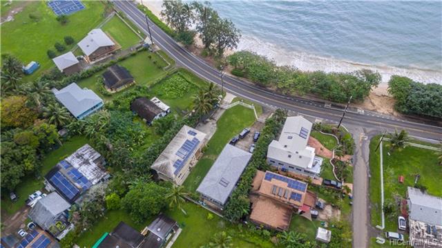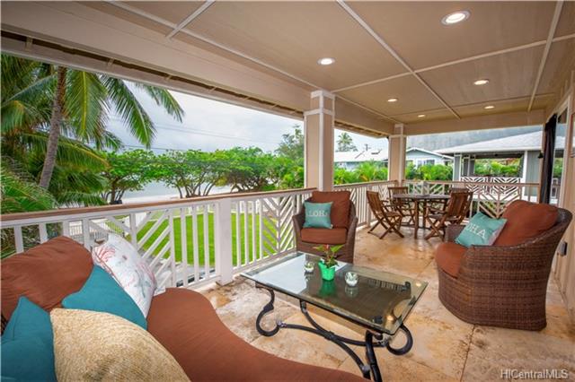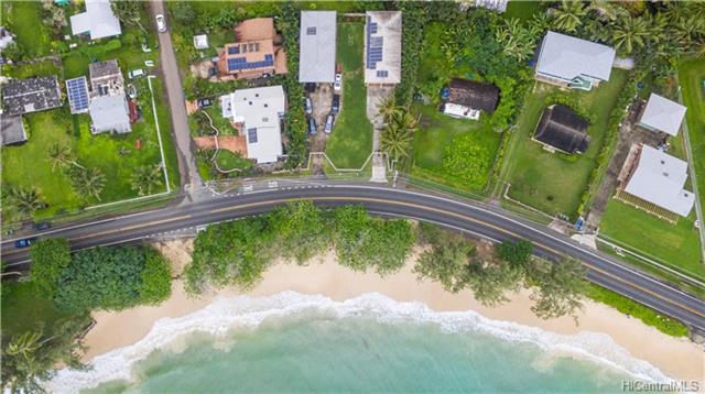 This gorgeous beach retreat is set across from the coastal road. Surrounded by palms & coconut trees enjoy the Koolau cliff backdrop from the bedrooms. The property has a large lot across the snorkeling friendly sandy beach. Enjoy amazing ocean views from the full length deck and front patio. With 3 bedrooms, 3 elegant bathrooms with travertine finishes, 2 living rooms and a designer kitchen with extra large granite island, this home has everything you need for beach living at its finest. Luxury vinyl plank flooring throughout, travertine flooring in the wet areas of the home and gorgeous crown molding complete its finishes. Owned photovoltaic panels and alarm system are included. Come make this your dream home. 3D tour: https://my.matterport.com/show/?m=d1ni966QcBv&mls=1