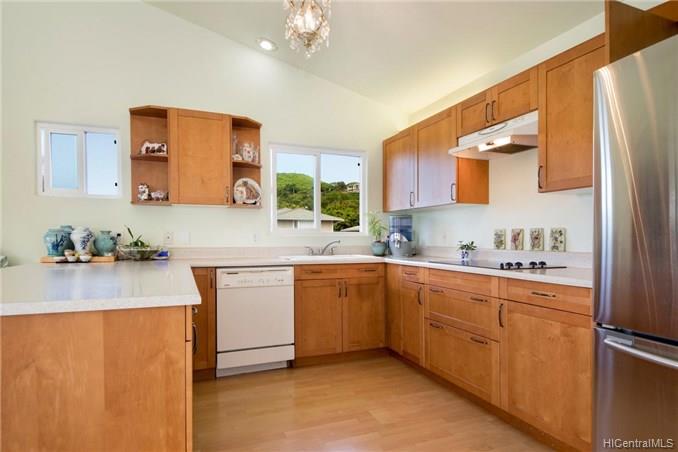 Custom designed 3 bedroom, 2 bath single family home in Kawai Nui Vista in Kailua. Tucked away at the end of a quiet cul-de-sac, surrounded by lush foliage and stunning unobstructed views of Kawai Nui Marsh wildlife sanctuary. Beautifully landscaped backyard with Queen & Areca Palms, bamboo, kukui and papaya trees. Expansive views from lanai and large open living room area upstairs. Enclosed 2 car garage, new solar water heater and low association fees. Kitchen has cooktop only- no oven. Sale of property contingent on owner buying a new property.