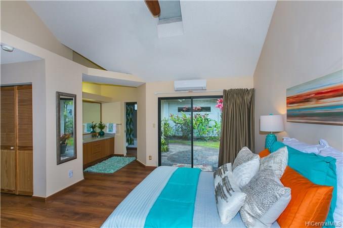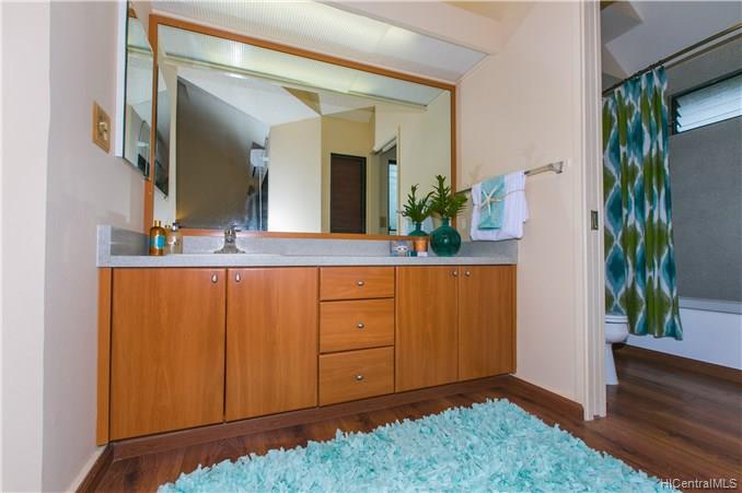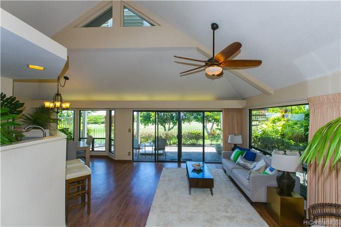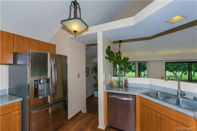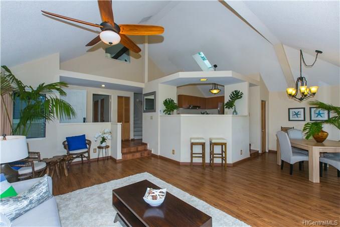 Peaceful Laulima, Hawaii Kai’s hidden gem. Golf Course Home with Master bedroom suite & laundry on the first floor. Open floor plan, perfect for indoor / outdoor entertaining, spacious first floor patio for BBQing has expansive green & blue views. From the large deck upstairs you can see Molokai on a clear day, relax and do some whale watching. Photo voltaic panels & solar water heater add to the value. New split A/C, dishwasher, stove & roof. The yard is pet friendly, private and completely fenced. Close to hiking trails, beaches, golf, horseback riding and tennis. Don’t miss out on this one!