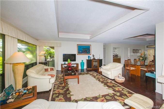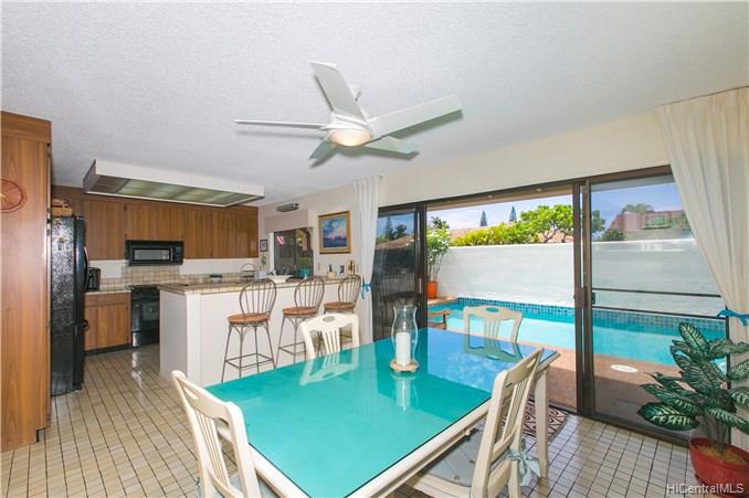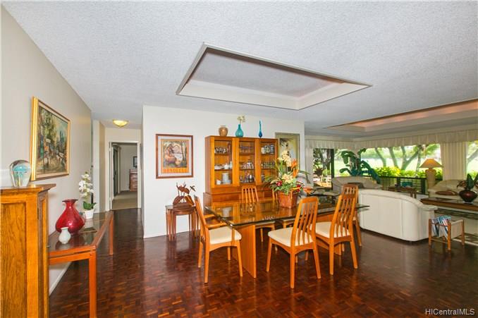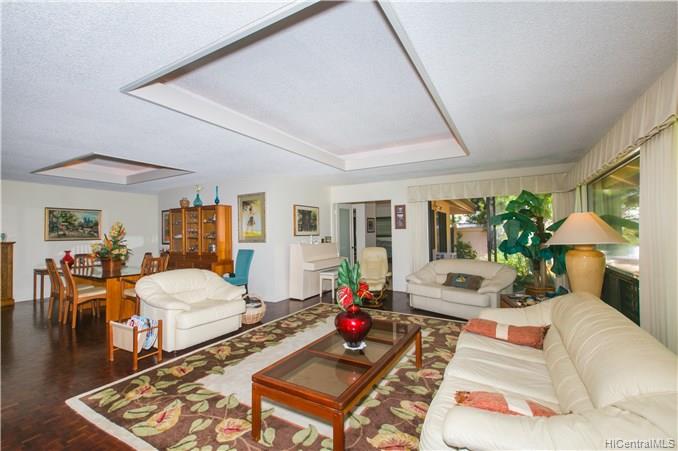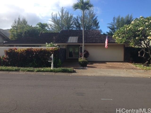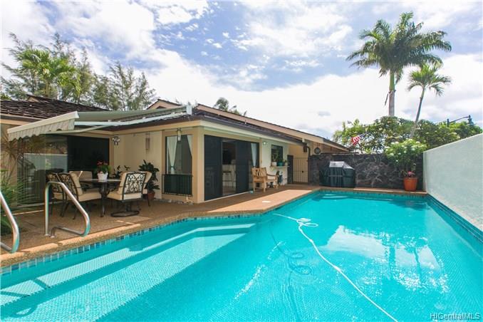 Former developers model home. Beautiful family home located on the 3rd hole of the Hawaii Kai Golfcourse. Well maintained with the largest swimming pool in the Queens Gate Community. Freshly painted inside and out. New carpet. Automatic sprinklers and up lighting features. Two spacious patios, one on the golfcourse and one pool side. Copper gutters. A view from every window. Finished garage with storage. Separate laundry room. Mature trees and professionally landscaped. Walking distance to Sandy Beach and Queens Beach. Easy walk to the KOKO CRATER gardens and horse stables. Keep your horse close to home. Perfect single level home. No stairs.