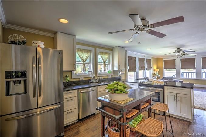 Price Reduction $26, 000 New Listing Price $1, 349, 000. Rarely available custom designed 4 bedroom, 3 bath single family home located just steps to world famous surf breaks and beautiful Haleiwa town. With great income possibilities! Attached to main house is a beautiful 2 bedroom and 1 bathroom renovated cottage.