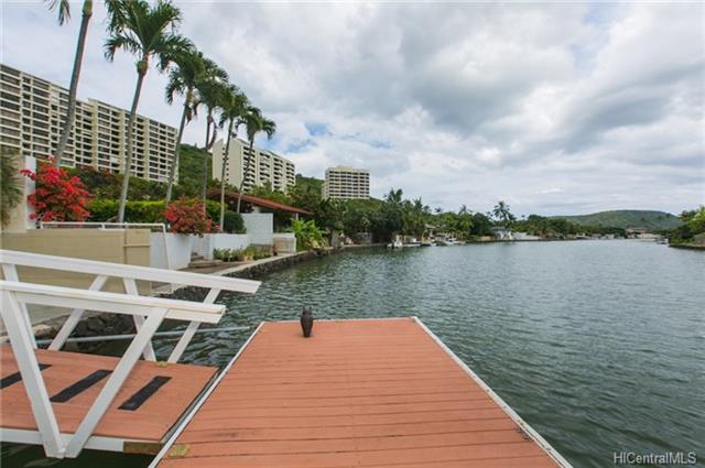 EXQUISITE highly sought after 3 bedroom / 2 bathroom single family home located in the desirable neighborhood of West Marina at Hawaii Kai. This pristine ready to move in home features brand new Paradigm commercial grade 100% waterproof wood/vinyl flooring in all three bedrooms; kitchen equipped with Jenn Air refrigerator freezer, Jenn Air gas stove/oven, and Bosch dishwasher; plantation shutters throughout the home, SPLIT A/C in every room, PV solar system, fully landscaped yard with sprinkler system and exterior security cameras. Master bath includes an insolid shower and counter top with custom sink, and Toto toilet system. Queen size murphy bed/wall unit in 2nd bedroom. Relax and enjoy the cool breeze next the dock. This one of a kind property is a MUST-SEE!