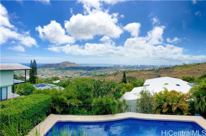 Beautiful unobstructed views from this lovely Waialae Nui home. Enjoy beautiful views of the ocean, Kahala, and Diamond Head. Sunset cocktails from your pool and deck. Located just a couple of minutes to Kahala Mall, freeway access, schools, entertainment, restaurants, and more.