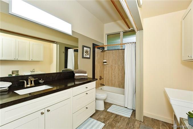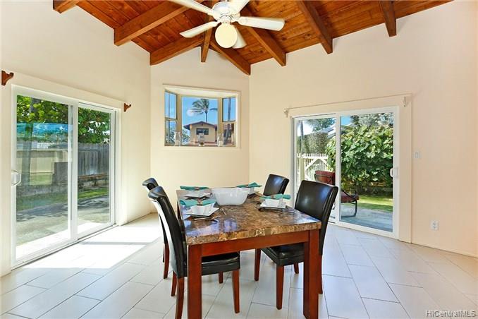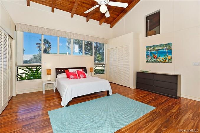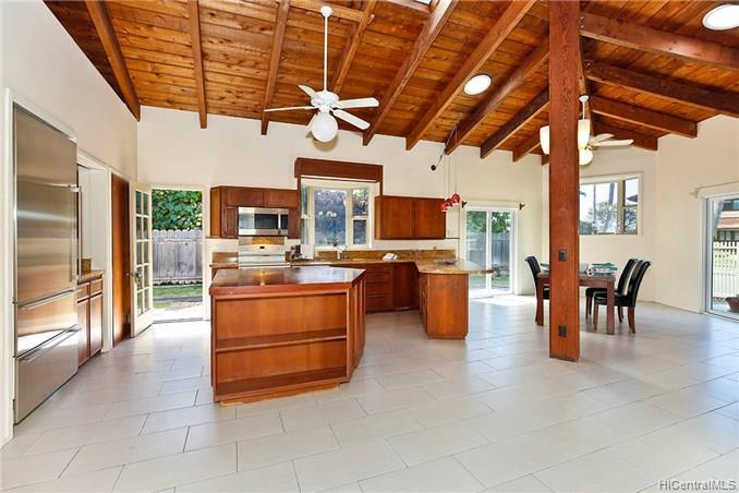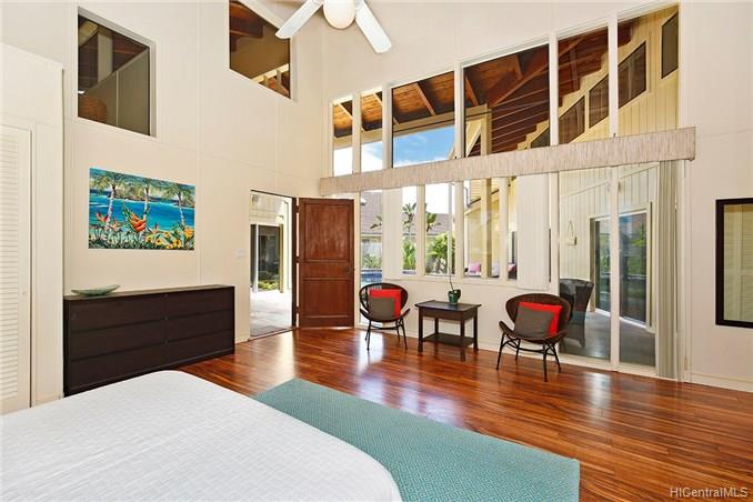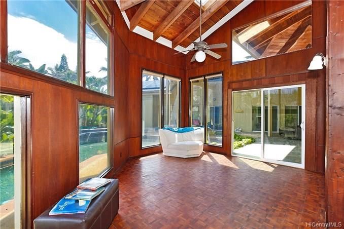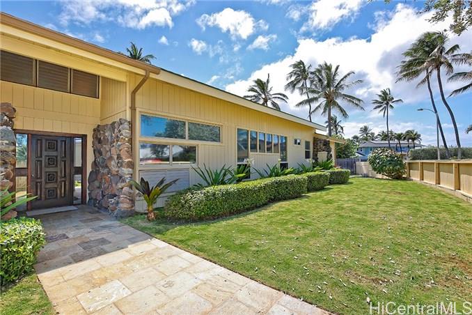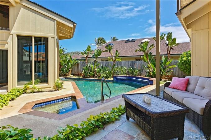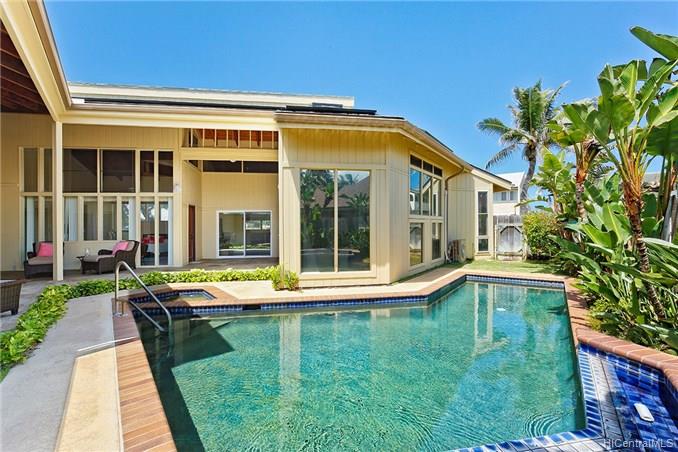 This special home is truly a must see! Welcome to Kailua’s coveted Kaimalino neighborhood on a quiet cul-de-sac location. Enjoy the sound of waves crashing as you are just across the street from the ocean (beach access steps away). This lovely architecturally designed home features 3 bedrooms, 2 newly remodeled bathrooms, a bonus office or craft room as well as spacious “great room” all to be enjoyed as they graciously open up to a wonderful lanai area complete with sparkling salt water pool. The island lifestyle is epitomized here with true indoor/outdoor living. You will appreciate the newer roof and owned PV system to complete this fully gated private residence.