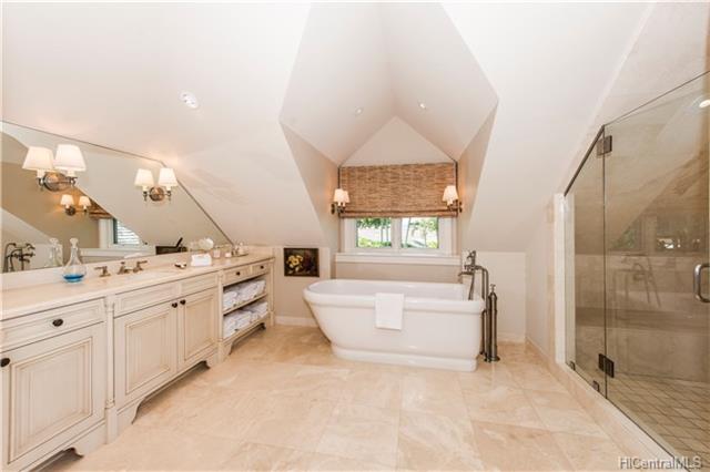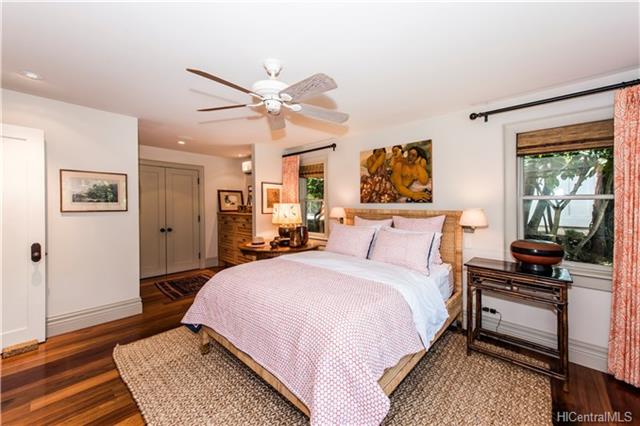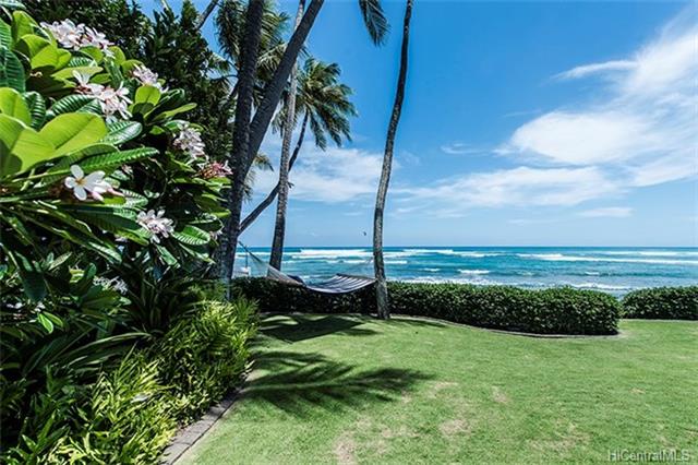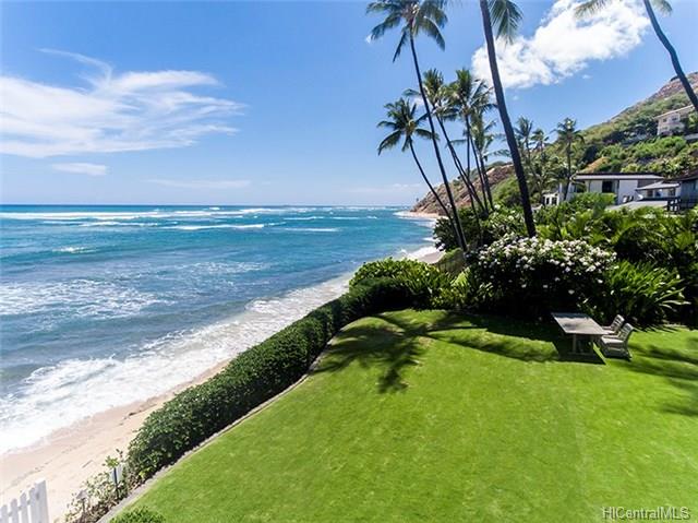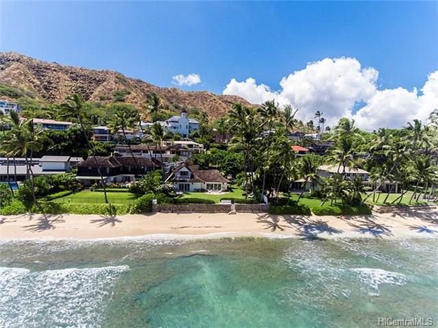 Situated on Prestigious Diamond Head, fronting over 85 – linear feet of gorgeous sandy beach. This beautiful home was thoughtfully and meticulously rebuilt in 2004, with exceptional attention to design details, keeping the spirit and charm of a classic Kama’aina residence. Finishes include traditional batten board siding, hardwood flooring, crown moldings and walls of pocketing glass doors to enjoy gorgeous ocean and garden views from the living and dining areas. A generous second floor master suite boasts vaulting ceilings, a covered ocean facing lanai, walk-in closet with numerous built ins. The entry to the property is impressively walled for privacy. This special Diamond Head home is in the perfect location to rediscover the pleasures of relaxing and taking each day as they come.