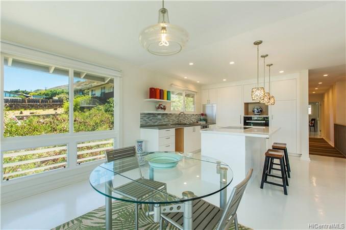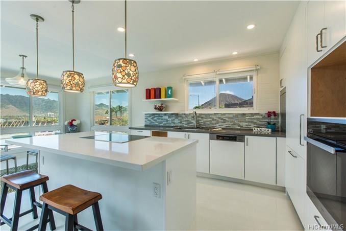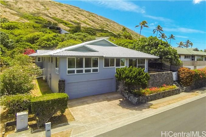 Move into this beautifully remodeled Portlock home. A brand new kitchen with Miele appliances. The gracious living area opens up to the kitchen and dining area complete with a gorgeous island. New windows, blinds, appliances, split AC and the list goes on. You must see this home to appreciate the spacious feel. Great air flow and ceiling fans keep the home cool and split AC systems and a backyard pool are there for relief when the trades are away!