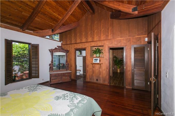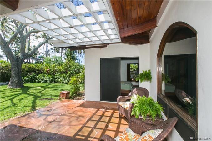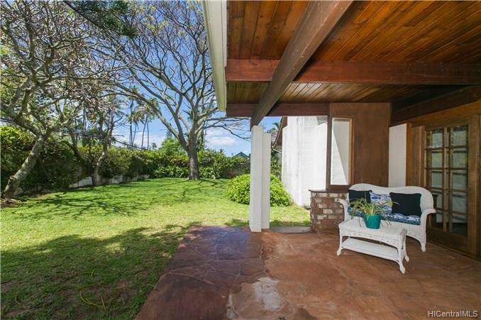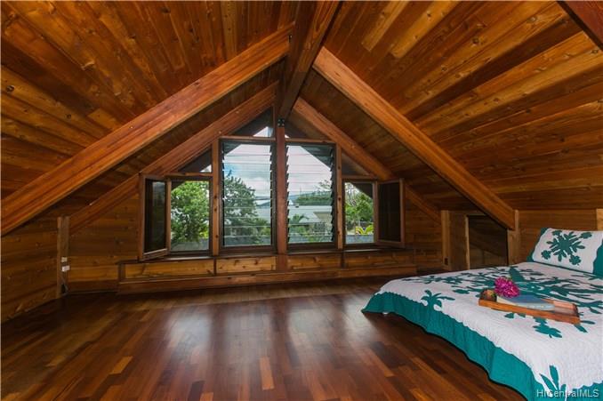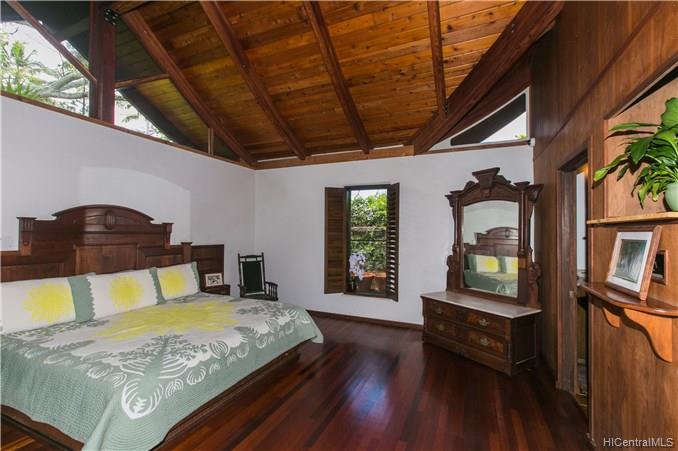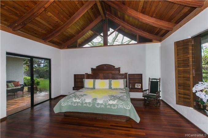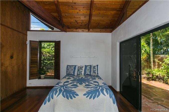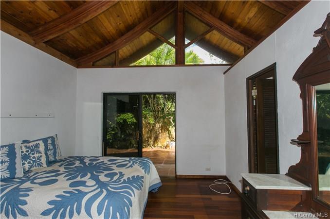 Priced to Sell! This custom built home with vaulted curved wood ceilings which take your breath away as soon as you enter the front door. This wonderfully private corner lot beachside home has so much to offer – the Brazilian Cherry wood floors line the home throughout, the multi-use loft areas allow cool trades and provide valuable storage spaces, the Flagstone lined lanais which open out into the front & back yard areas, and your own private deeded access to the spectacular & popular Kailua Beach.