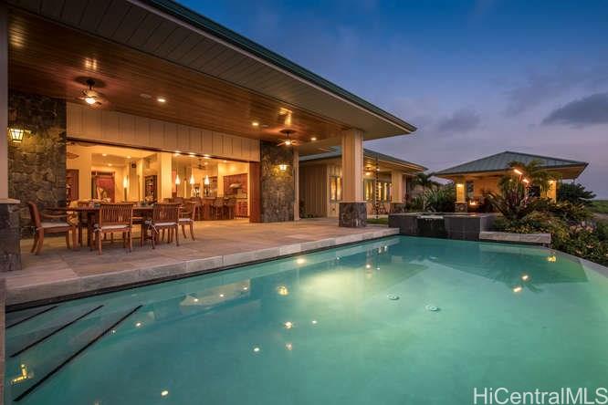 新築、この 3 bedrtoom、Hokuli’a コミュニティの場を見下ろす 3 フルと 2 の半分の浴室ホーム自慢海の壮大なパノラマ ビュー。 1.34 エーカーの敷地に位置しています、静かな cul デ嚢内部の正方形長さの約 3,940 とに位置しています。 アーチ型の 11 フィートの天井中央のリビング エリアで、家庭内では、lania 1200 平方フィート以上に拡大オープン豪華な感じを追加します。 インフィニティ エッジ プールは、太平洋のオーシャン ビューに流出し、戸建のプールの家には、屋外バーベキュー、バー、プロパン火災機能、半分お風呂が組み込まれています。 家は、mahoghany キャビネット、縦の穀物 fir トリム ・花崗岩のカウンター トップなど音質の詳細の仕上げです。 Hokuli’a のジャック ・ ニクラウス ゴルフ コースは、フアラライ山の斜面に広がっています。