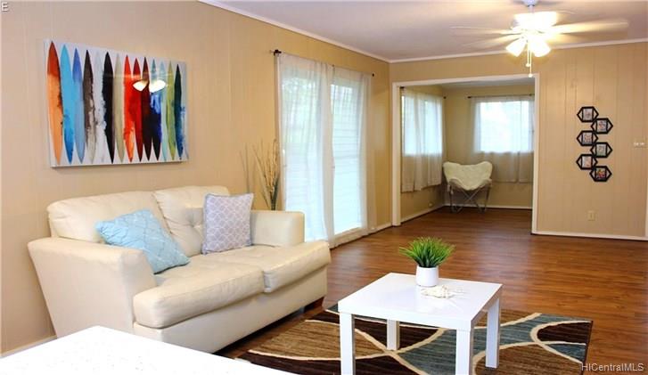 Newly renovated with solid wood cabinets and quartz counter top/island 3 br plus a den. Brand new ss appliances (delivered in April). New flooring, and fresh interior and exterior paint. ADA friendly. Outside storage. Large lanai is enclose able for extra living area. View Large Professional Photos at bit.ly/oahure211