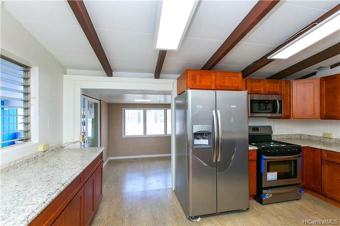 Motivated Seller! Entertain your friends and family in this beautifully remodeled home while sitting at the pool and cooking in the brand new kitchen. Enjoy mountain views from the pool deck. Large SF home with pleanty of room in this 3 beds, plus office room, 1½ baths and a large bonus room off the kitchen. New kitchen with all wood, soft close cabinets, new roof, new appliances, new bathrooms, new flooring and carpet, new paint. Move in ready. View Large Professional Photos at bit.ly/OahuRE198