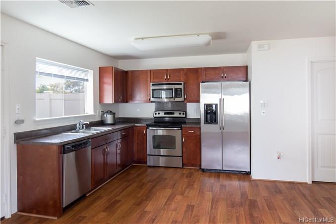This beautiful 3 bedroom, 2.5 bath home sits just moments away from white sand beaches, and beautiful hikes on the amazing west coast of Oahu! This property enjoys a large lot of over 5, 500 sq ft, with breathtaking views of the Waianae mountain range! Home features a large two car garage and long driveway with room for 3 or more parked cars, great for guests. This home is complete with a central air system to keep you cool from the warm Hawaiian sun. Enjoy the newly remodeled lawn, perfect space for families, and entertaining. Will not last long!