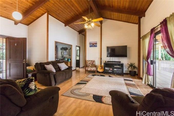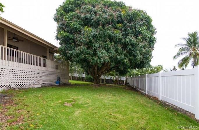 Amazing value in Palisades. This home features 3 bedrooms and 2 baths with an additional bonus office or 4th bedroom. The entire house features vaulted ceilings with exposed beam highlights. Situated at a good elevation, this home was built allowing for easy flow from garage to kitchen to bedrooms. Setting this residence apart from much of the community is the large, fully fenced in fairly level back yard to enjoy family time and pets while relaxing on the large back lanai with ocean views.