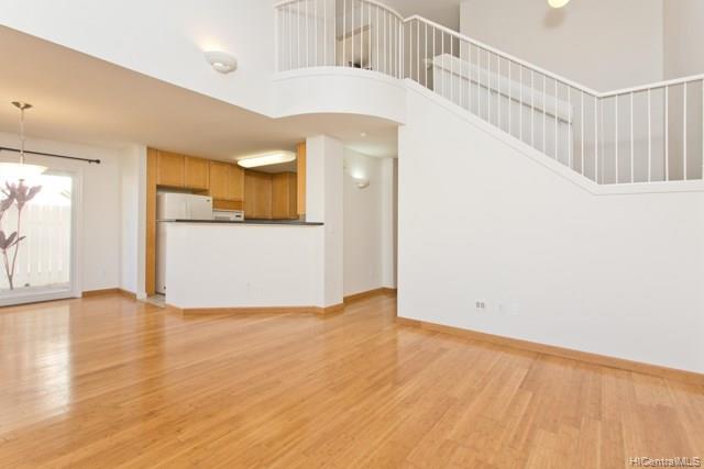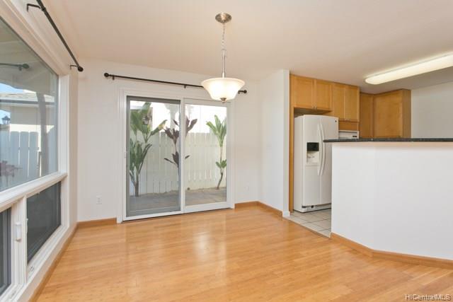 OPEN HOUSE, 2/18 from 2-5pm. Nicely Renovated, Attached 3 bedroom, 2.5 bath home at ‘Maili Beach Lane’. Located in a private cul-de-sac. Home has so much to offer! Very spacious open concept, w/ nearly 1800 sq ft of living area. High 15 ft ceilings in living room, bamboo flooring throughout, granite countertops, tile bathrooms, double sink vanity, & new interior paint. Huge master bedroom with large walk-in-closet, & bathroom. Partial ocean view from upstairs bedroom. Additional room off laundry closet could be a home office/den/4th bedroom. AC system throughout, & sprinkler system for fully fenced yard. Great area of Maili, just a walk away to the beach, & bus line. Association fee covers monthly property insurance cost.