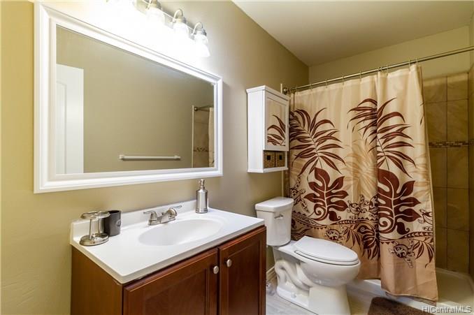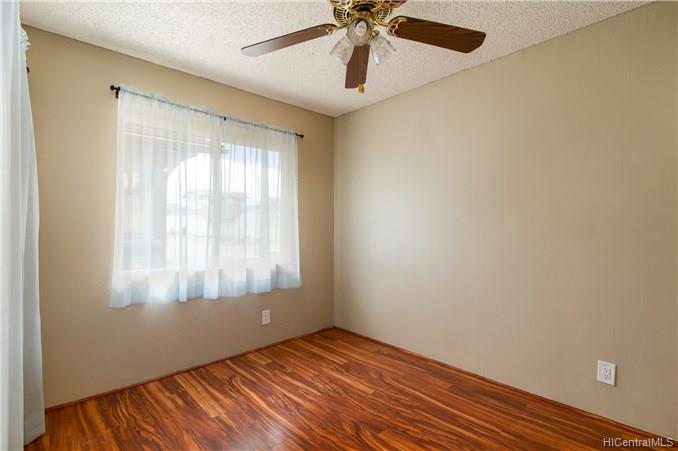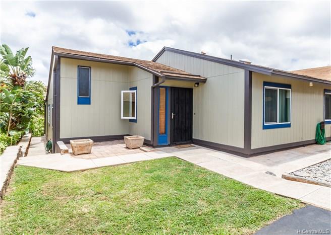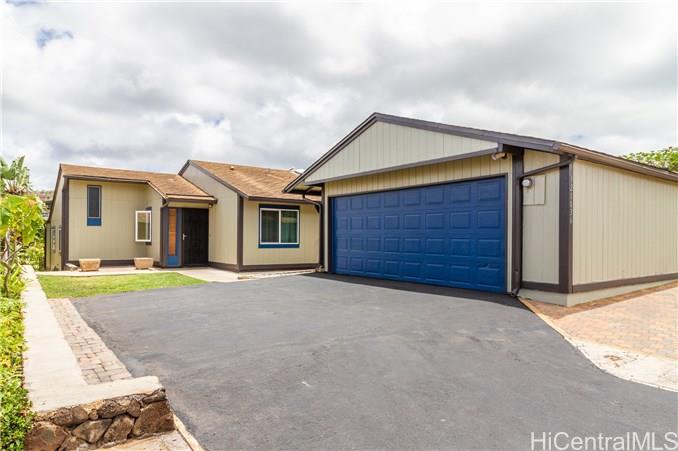Beautiful Location, quiet and breezy in the cool Upper Makakilo area. Nicely maintained home with ocean, mountain, sunset views in a well-established, rarely available small private community. This premier perimeter lot location cannot be found in the newer developments at this price! It has ceramic tile and laminate flooring for easy cleaning. Spacious patio and private yard to have BBQ’s and family gatherings. Make this your home. With a spacious yard, large driveway 3+ VEHICLES CAN FIT, plus a 2 car garage/workshop and a spacious backyard area for entertaining, this is not a typical property. Use of Kanehoa Rec Center pool and guest parking stalls included. Convenient location, not very high up Makakilo Drive, with quick freeway access near shopping, schools and dining.