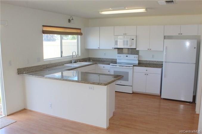 Ewa Gentry Prescott – This 3BR/2.5BA home features the best location in the neighborhood – backs five acre park. Offers cool trade winds and beautiful view from master bedroom. Recently upgraded with all new electric appliances, dishwasher, w/d/ laundry tray. All new plumbing valves and feeds just completed and new exterior paint. New ceiling fans and electrical lighting inside. Beautiful variety of mature palm trees with fenced in backyard. New irrigation system upgraded with locked station. Two car garage and freshly painted house within. Very nice neighborhood and neighbors are wonderful. Award winning elementary school within three blocks. Pool amenities available through home owners association. Frequent concerts in parks and neighborhood activities available in this community.