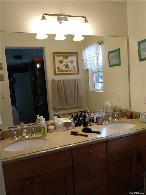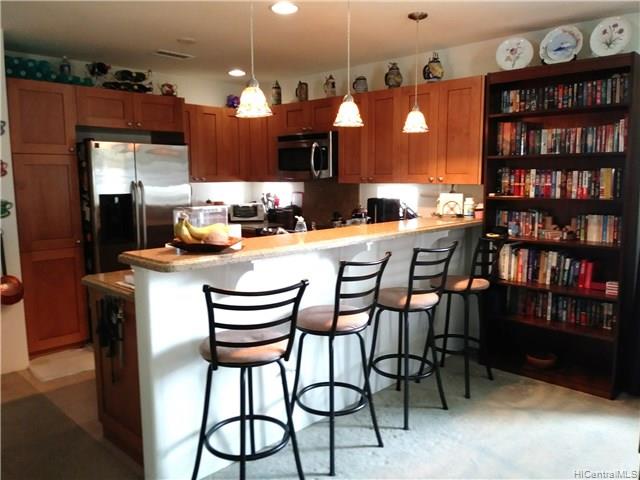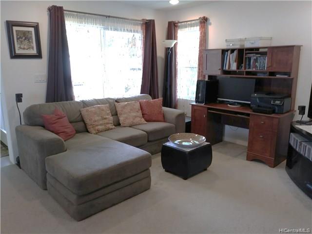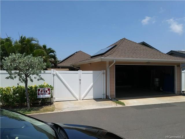 The house comes with Central A/C, a 1 panel Solar Water Heater which runs separate from the PV system and $ 70,000 in upgrades, which are: 16 panel Photo Voltaic System (Electric bill is under $ 20 monthly) – Rain gutters – Parking slab with double door gate (next to garage) – Yard front gate- Patio screen door – Polished concrete garage floor – Cabinets – Silestone counter tops – Bathroom floor tiles – Shower and bath tiles – Ceiling fans – Electrical outlets and switches – Ceiling can-lights – Custom blinds. The AOAO Fee of $ 211 includes: Internet – TV – Home phone, and the use of the Community Swim Club (Pool -Hot tub – Tennis Court, Gym, BBQ areas). Exclusion: draperies and curtain rods.