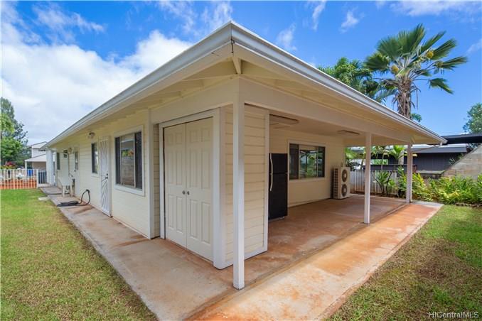 Well-maintained and move-in ready single level three bedroom, two bath home in desirable Mililani. This home has been cared for by its owners over the years and pride of ownership shows! Spacious family room features split AC and master bedroom has a window AC unit. Covered lanai perfect for outdoor dining, summer BBQs and storage closet as an added bonus. Low maintenance yard and quiet neighborhood add to the charm of this home. Minutes from schools, shopping, restaurants, grocery stores, etc.