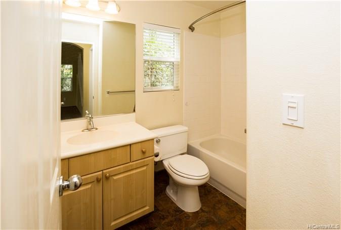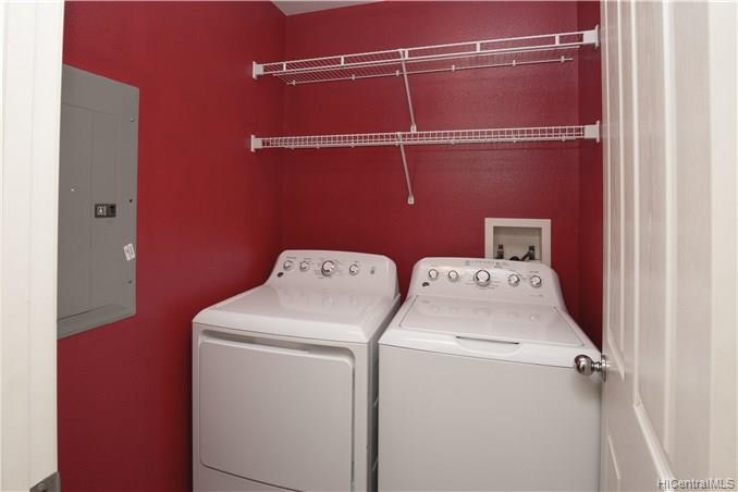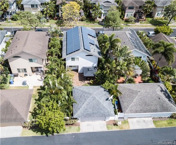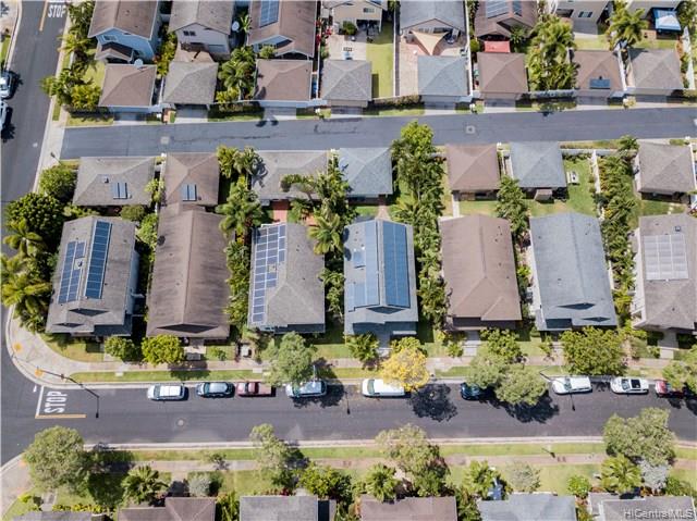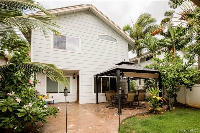 Numerous upgrades in this desirable Ocean Pointe 3 bedroom, 3 bathroom home with loft and one bedroom and full bathroom on the first floor. 40 owned photovoltaic (PV) panels with net metering for super low electric bills. Upstairs loft can be easily converted to fourth bedroom. Granite countertops, custom tiled bathrooms, wood laminate flooring downstairs, plush upgraded carpeting upstairs, flagstone lanai with solid gazebo, tropical landscaped backyard with mature fruit trees.