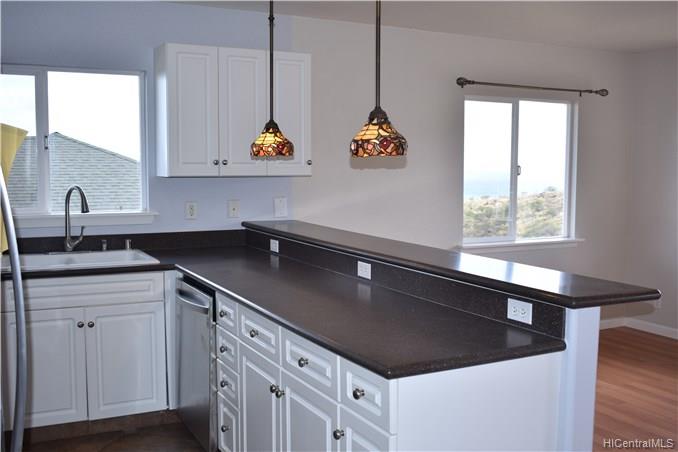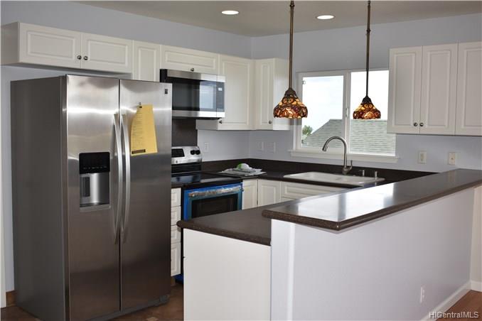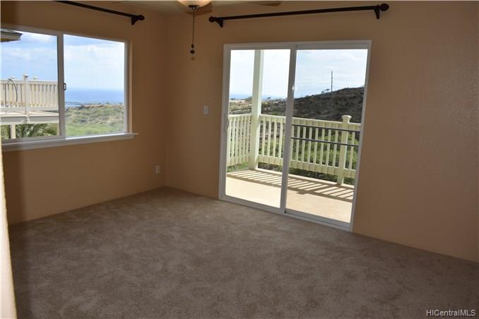 Extremely rare opportunity to own a single family house in this beautiful well maintained gated Seascape At Makakilo community. This house features 3 bedrooms 2.5 bathrooms 2 car garage on over a 10, 000 sq. ft. lot. Extraordinary Ocean and mountain views throughout the house. Central AC, brand new stainless steel fridge, range, microwave, dishwasher and water heater with plenty storage areas. Recently renovated with fresh interior and exterior paint. Brand new carpet in master bedroom and second bedroom with laminate and tile floors in the rest of the house. This house will not last long, schedule your showing today, if you are upgrading or moving to the second city of Kapolei.