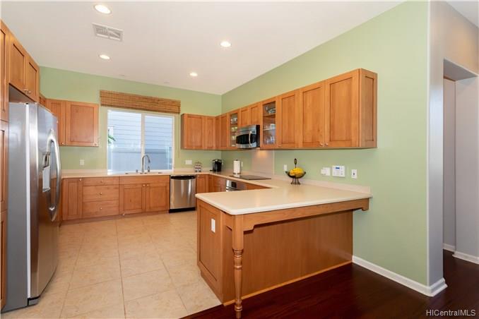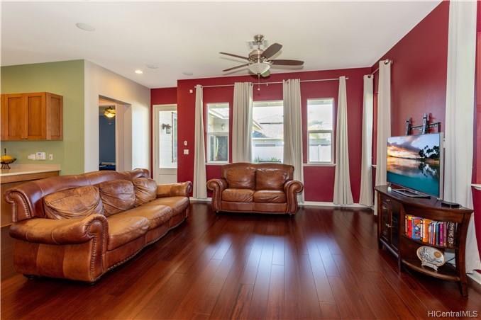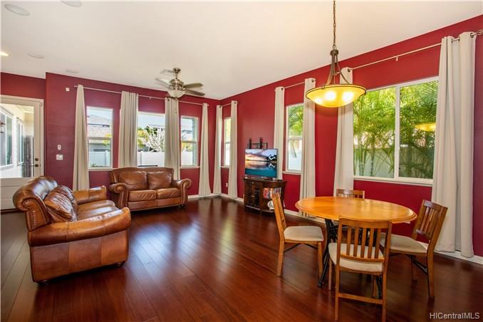 3 Bedroom 2 Bathroom w/ Den Beautiful Single Family Home In The Award Winning Community Of Ka Makana At Hoakalei. This Single level Home Has Hardwood Floors, Custom Paint, Ceiling Fans, Custom Window Treatments, Central AC, High Ceilings, Open Kitchen With Stainless Steel Appliances, Washer And Dryer, 2 Car Garage, Fully Landscaped Yard Front And Back, ( Community Pool, Tennis Court, And Gym ), Dog Park, Bike Paths And So Much More!