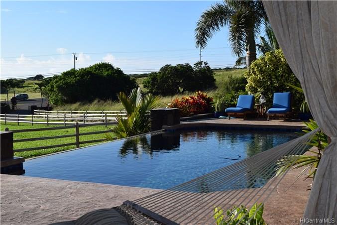 The minute you pass through the gated entry, you will soon realize that true paradise has been found! This magnificent custom home with unobstructed ocean views sits on over 12 acres of gorgeous pasture land. Perfect for the gentlemen farmer or the family looking for privacy. With over 2,000sf of living space, this home was built to please even the most discriminating buyer. Gourmet kitchen with top of the line stainless steel appliances, granite counter, large open floor plan with vaulted ceiling that open to a large lanai, cabana and infinity edge pool. Large private master suite with walk-in-closet, walk in shower, separate Jacuzzi style tub, two additional over sized bedrooms, office, large 4 car garage/workshop with separate guest cottage of approximately 720sf and much more!