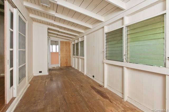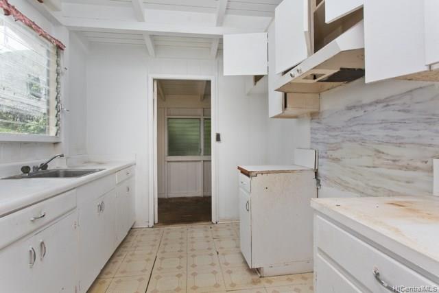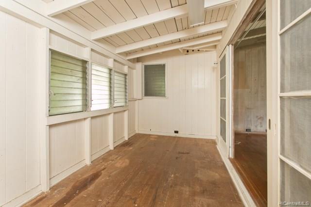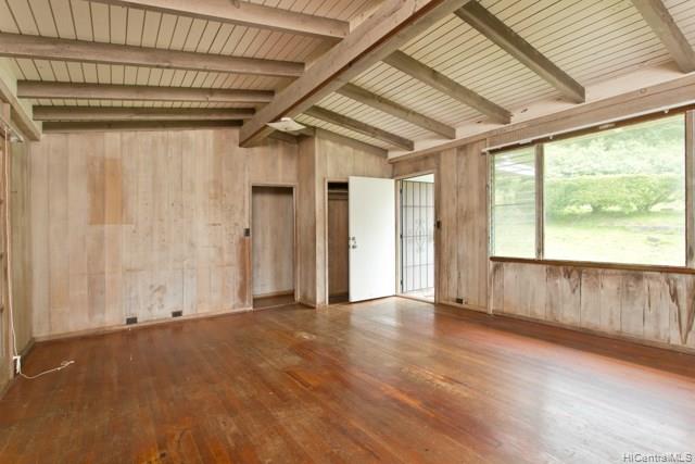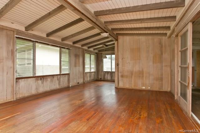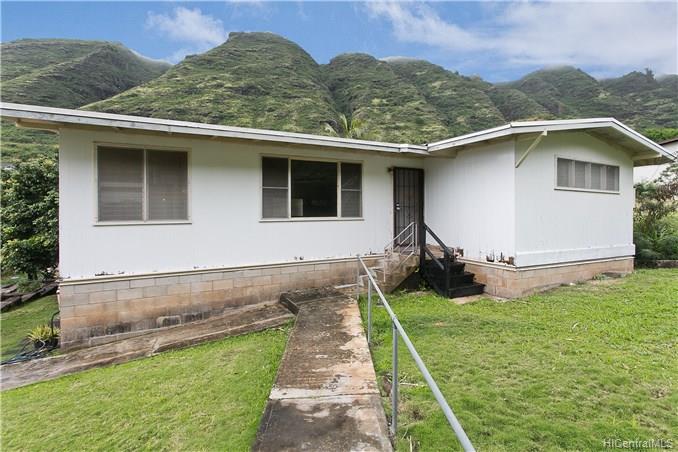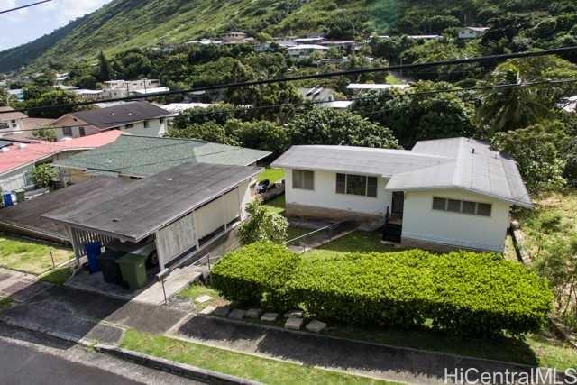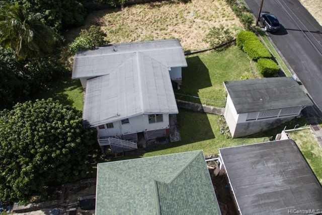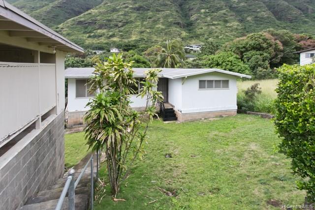 Wonderful lot with a great back yard. Mostly level with mature, fruiting mango and lungon trees. House is salvageable and was occupied in 2017. Electrical and plumbing upgraded over the years, termite repairs done in the past, tented in 2015. Hardwood floors are in good shape, just need to be refinished. Great bones, it weathered the recent rains very well. Rebuilding may get you ocean views from the top floor. NOT in Flood Zone. NOT a slide lot. Only 1 neighbor.