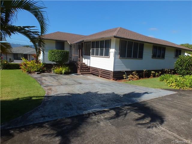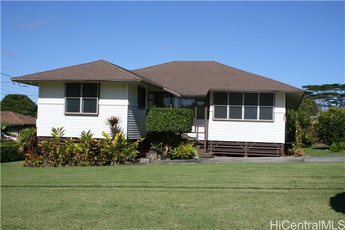 Cool Quiet 2000 sq ft home on large level lot with tremendous possibilities. Conveniently located minutes from Wahiawa town. Home offers huge family or recreation room with Mitsubishi split air, eating area in kitchen, separate formal dining area, large living room, wash room with 1/2 bath, two car garage with entry into the home, additional parking pad in front of home. Home is set back from main road with large frontage providing additional privacy. Tented approx. 2 years ago with warranty expiring in 2020. C&C installed speed bumps before and after home on Glen Ave. provide added safety. Move in condition. No Washer and Dryer provided. Sold in “As Is Condition”.