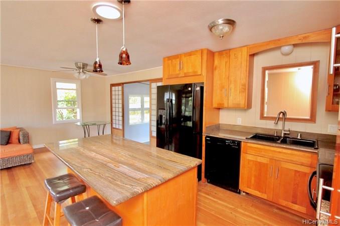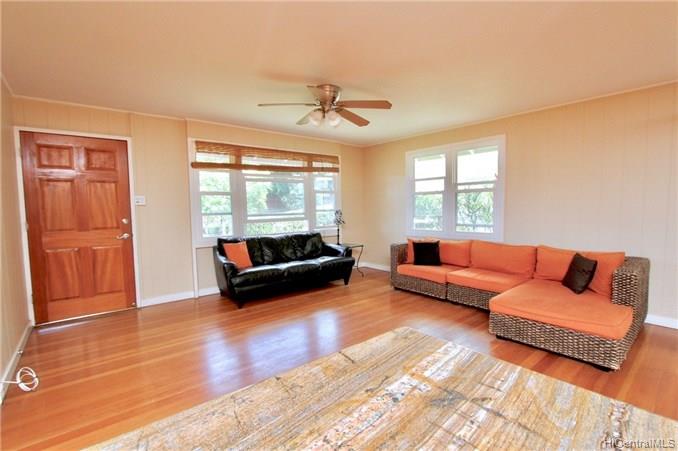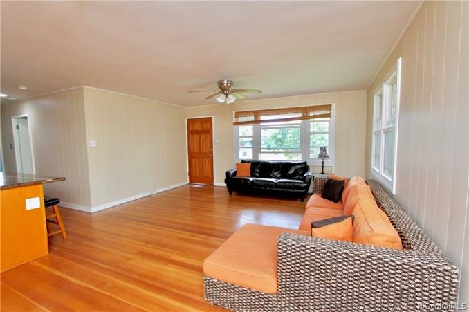 This home is cute as a button. Freshly painted in/out. Original hardwood floors, updated kitchen with hardwood cabinets and gorgeous quartz countertops. Standup shower is a must see. Huge 468 sq ft. open family room could be a dance studio, kid care…let your imagination go. Roof was treated with Gacko. Mango tree in back yard. Outdoor shower for beach days. Carport can be used as tandem parking. Minutes from great beaches. Beautiful manicured front yard. Mountain views.