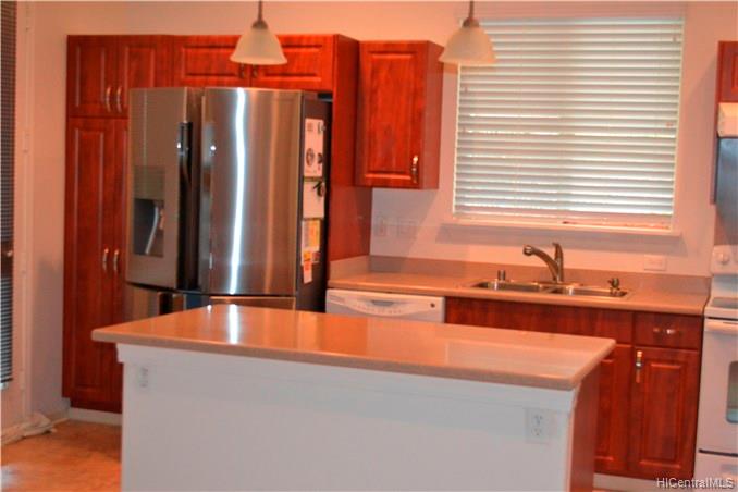 Kahiwelo at Makakilo, Single level 3 bedroom 2 bath home. Currently no other single level models available. central AC, insulation, double pane windows, corian kitchen countertops. Spacious 9 ft ceiling. Price includes photo voltaic system & gutters. Convenient to H-1 and Kapolei shopping.