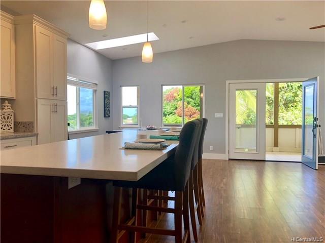 NOW- $10k towards adding 3rd bath! Seller wants to see all offers- don’t wait! New small hilltop neighborhood in Kaneohe, 5 miles from Kailua, peaceful, treetop sunset views, built 2016, like NEW! Open floor plan, wood laminate throughout, high ceilings, skylights, lots of cabinets, quartzite counters, glass backsplash, island bar, dining area, ACs, ceiling fans, lots of vinyl windows/natural light, gas appliances! Large master BR w/walk-in closet, 2 designer baths. 900sf loft-style bedroom downstairs (*permitted as rec area, doesn’t match tax records) has separate entry and main line ready for added bath. PV approved by HECO. Long grass yard out back, 2.5 car garage, 3-4 parking outside! Easy access to shopping, dining, mall, movies, H-3, Pali, Likelike highway. Going off market soon!