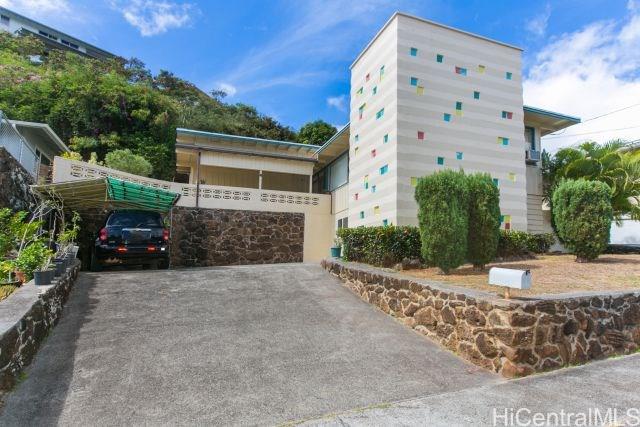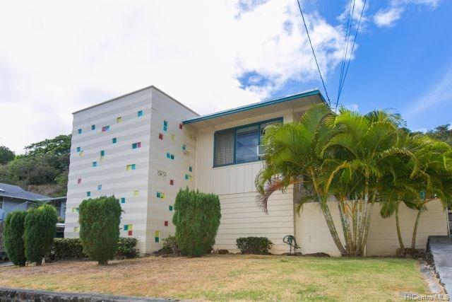 A fantastic property centrally located in Moanalua Gardens with easy access to Tripler Hospital, Freeway, Town, Airport etc. This home offers so much opportunities to the next home owner with adequate parking spaces plus street parking, wet bar downstairs that could be converted into another rental opportunity. It also has a big lanai upstairs that is great for entertaining guests. Lots of fruit trees in the back yard. Enjoy the mountain view and tradewinds from the valley. Sold “As Is”.