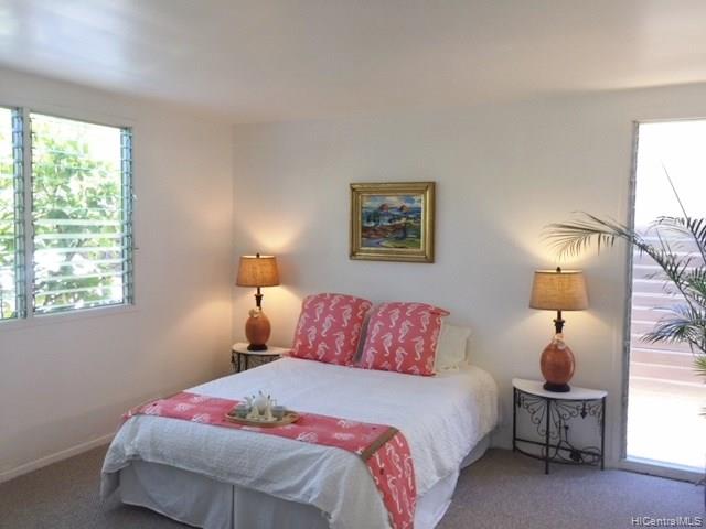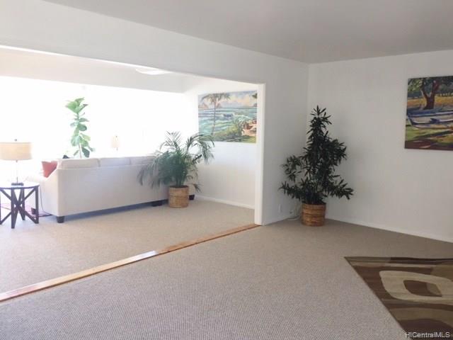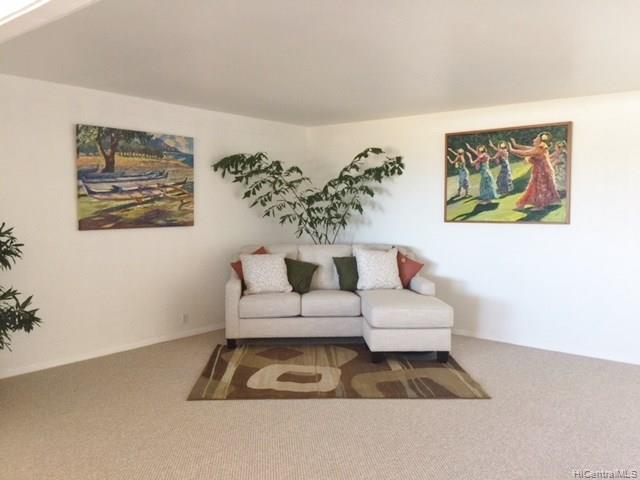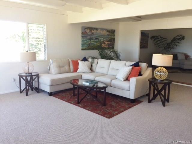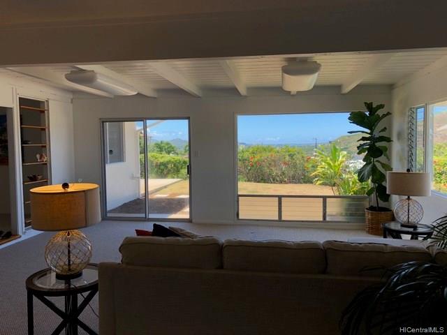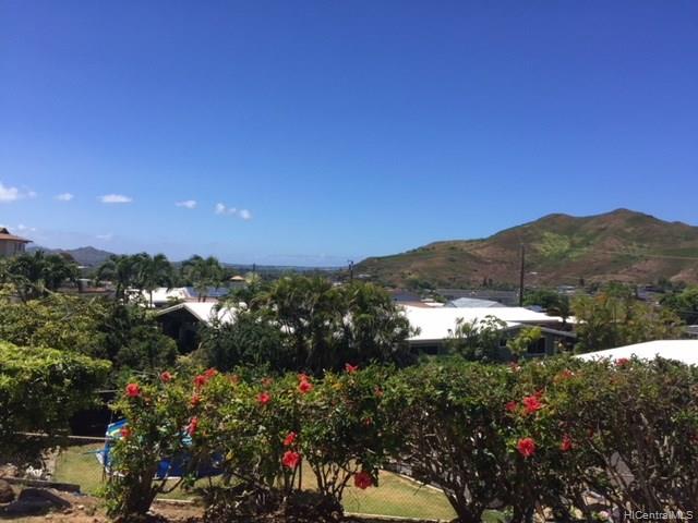 This well situated home with an Open style floor plan sits up high looking out to mountain & ocean views! This large lot is almost 9000sf, has a myriad of possibilities & wonderful potential incl. a poss ADU in back or putting a 2nd flr for addl views. This home is newly painted inside and out w/new carpeting in living room & bdrms. 3/1 at the back of the home & 1/1 at the front — Could possibly make front bdrm an ADU for rental income. Lanai enclosed w/out a permit — sf not incl in living area. Home sold “as is”.