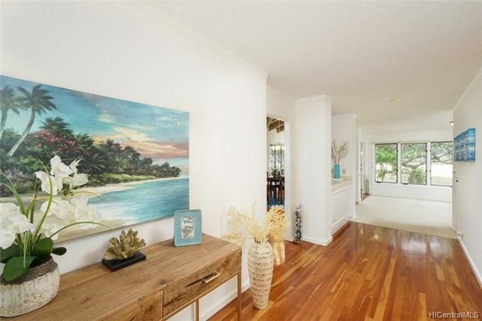 Beautiful well maintained home locked in the exclusive Queens Gate Point! Open floor plan with high vaulted ceilings and large windows allow for lots of sunshine and cool breezes. Private lanai is perfectly located right off the kitchen for easy access for entertaining with tropical landscaping and jacuzzi! Community clubhouse, racket ball, tennis and basket ball courts. Close to Sandy’s beach, Hanauma Bay, water activities, shops, restaurants and some of the best schools you will find on Oahu!