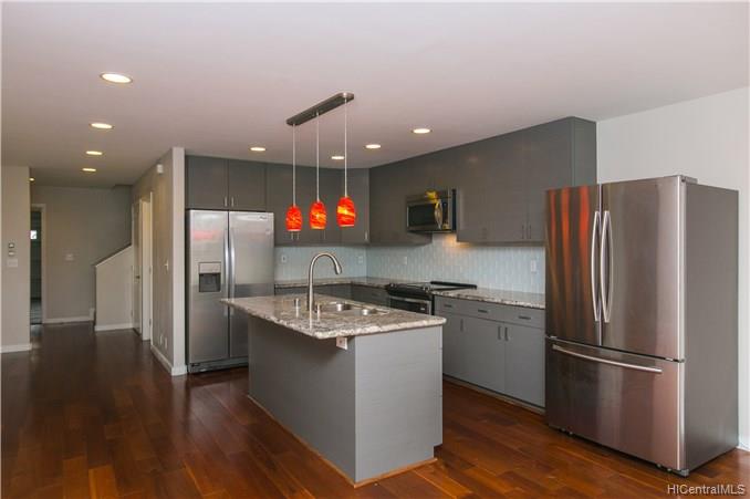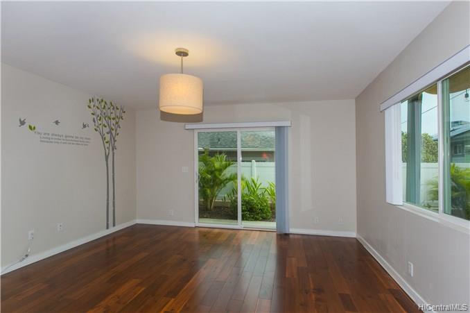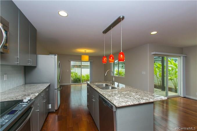この 2 階建ての家は 2015 年に建てられ、まだ真新しい家のような感じています。アップグレードされたハイエンド キッチン キャビネット、機器、およびフロアー リング。すべての寝室は 2 階です。ダイニング、キッチン、リビング エリア、半分のお風呂は 1 階です。ベッドルーム、リビング エリアに A/C を分割します。新しい植物やモンド草庭にアップグレードされました。東と西の H-1 フリーウェイに簡単にアクセス。ダウンタウン ホノルルと 10 分アラ モアナ ショッピング モール、ビーチへ車で 15 分です。