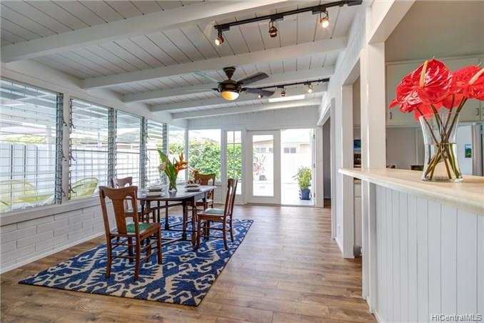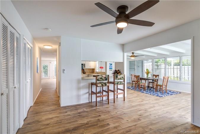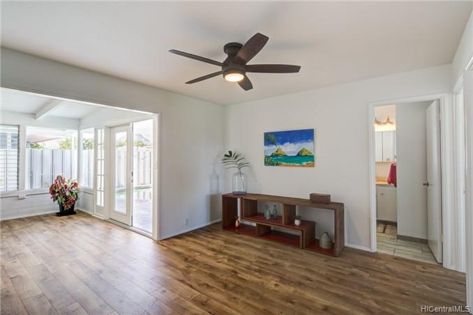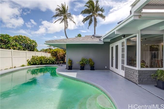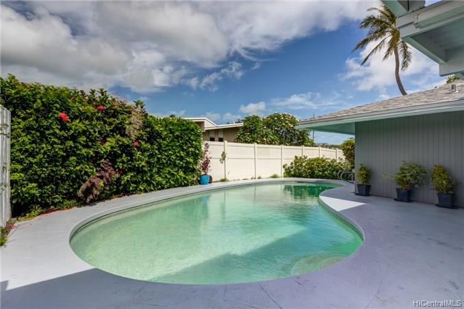 This 4 bedroom, 2 bath home with a pool sits on a corner lot in the desirable Aikahi Park neighborhood! Fresh interior and exterior paint throughout, new floors, new ceiling fans, new washer & dryer, updated landscape, PV, ample of storage and so much more! This spacious and bright house is waiting to become your home!
