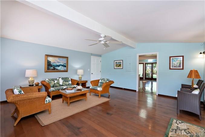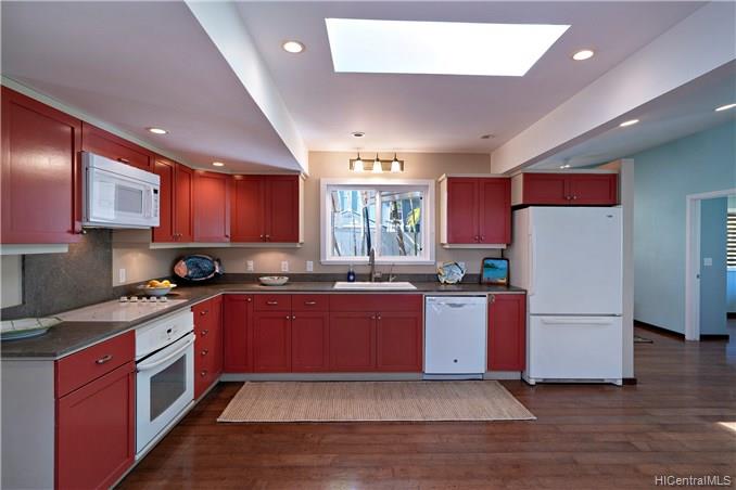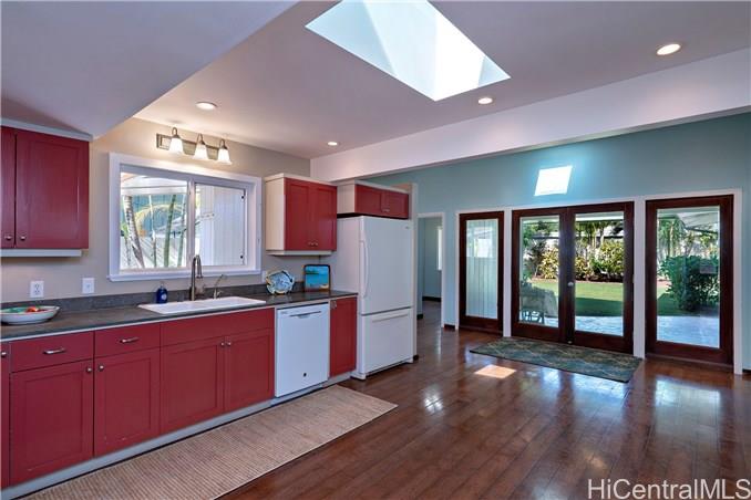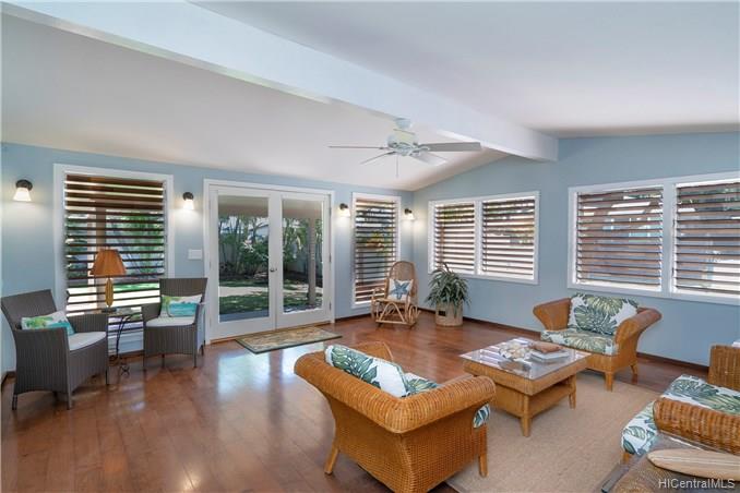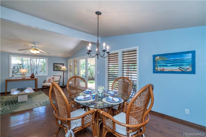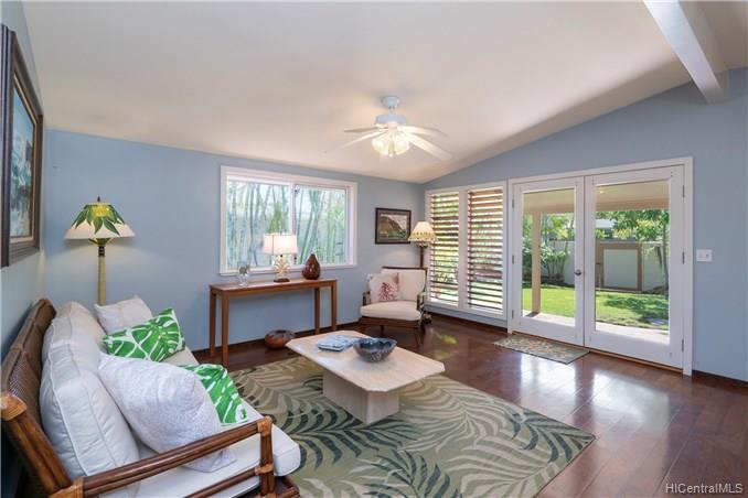 NEW REDUCED PRICE! Rarely available Paopua Loop in a popular Enchanted Lake neighborhood location in Kailua. This home was remodeled in 2012. This 4 bedroom 3 bath home features an open floor plan with bonus family room and extra large kitchen. Covered front and back lanai are perfect for entertaining and to enjoy the tropical landscaping. Fenced in yard front and back with a Bonus factor of extra storage units and a playhouse. Upgraded 200 AMP electric. Solar water. Trade wind breezes flow through keeping home cool. This home is a great value and easy to see! Close to Kailua Town and the Kailua Beach.