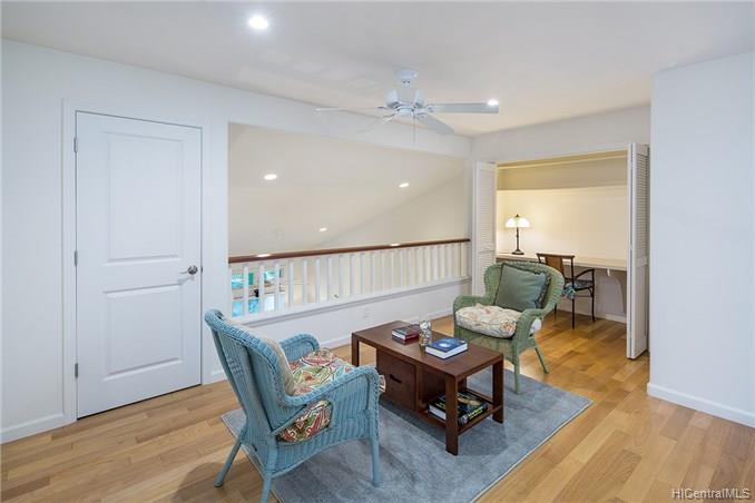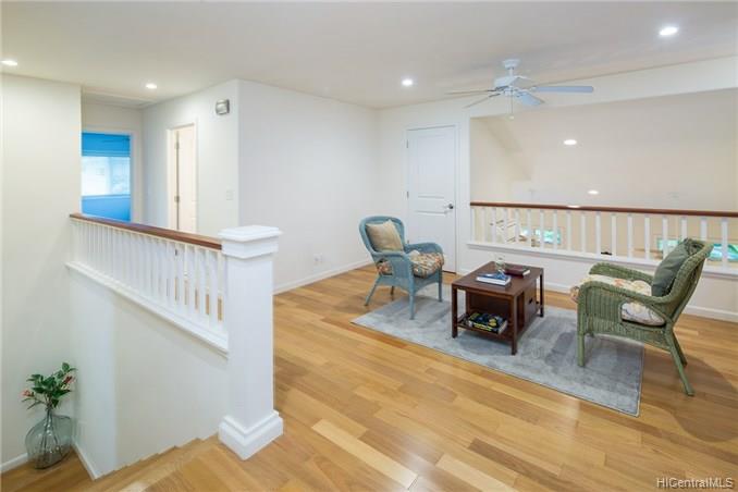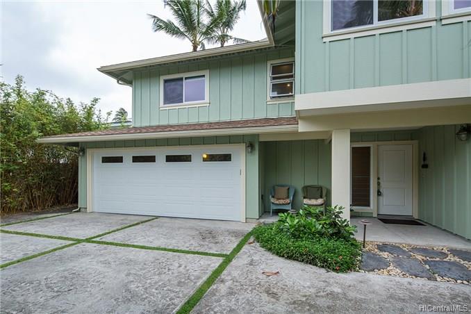 A secret hidden gem in Kailua that must be seen to appreciate. Excellent 2014 custom construction, still in pristine condition, nothing to do, just move in. Lovely open floor plan, spacious gourmet kitchen, stainless steel appliances, granite counters, wood shaker cabinets, and wine refrigerator. 4 bedrooms/3 baths includes a bedroom and bath downstairs, bonus room/study/office at top of stairs overlooking the living room under soaring ceilings. Split air conditioners throughout, hardwood/18in travertine tile/w-w carpet flooring, separate laundry room, oversized garage and lots and lots of storage space. Living room opens up through French doors to a large covered lanai and beautiful lush landscaped back and side yards, with gorgeous mature trees and flowering plants surrounding a lush green grassy lawn. Gated two-home CPR property, palm tree-lined private driveway, low maintenance fees include homeowners and hurricane insurances. See it now!