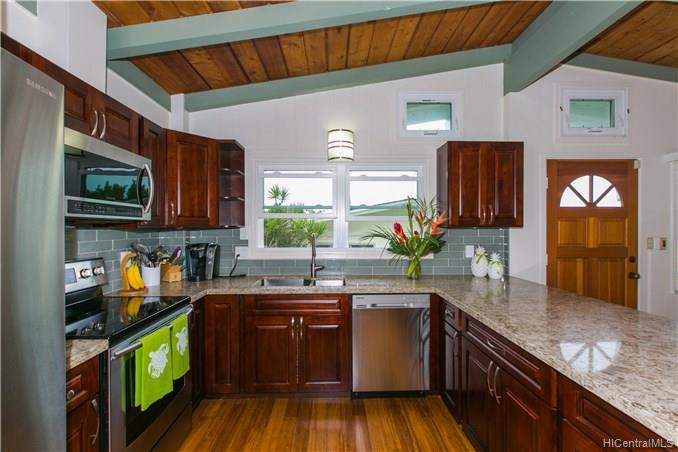 Niu Valley – Move right in! Renovated and Upgraded! 4BR/3BA home shows pride of ownership! Featuring New Pella Windows and sliding doors, Kitchen w/stainless steel appliances and Quarts counter tops, New Baths, Solar Water Heater, Hardwood floors. Terrific Location in very quiet neighborhood.