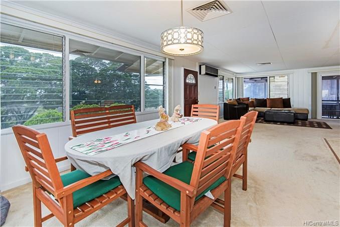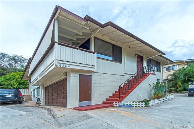 Privacy galore! A rare find nestled in Kalani Iki. Conveniently located just minutes to the Freeway, Kahala Mall, Whole Foods and fine dining. Enjoy living in this multifamily home. Upstairs has three bedrooms, two baths, a chefs kitchen with quartz countertops, stainless appliances, cherry wood cabinets, and a separate dining area. Downstairs has its own private entrance, wet bar, living area, bedroom, and bathroom. Both have icy cold split AC. Two separate laundry areas. Well maintained home with a large yard perfect for pets or gardening. Property backs up to conservation land. New roof with warranty. Drive-up driveway with lots of parking.