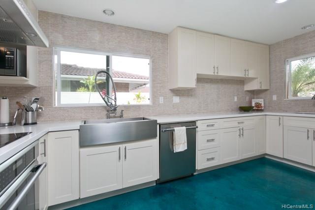Beautifully remodeled home in one of Hawaii Kai’s most desirable neighborhoods, featuring an executive kitchen w/Thermador Appliances, 2 kitchen sinks, and quartz counter tops. Also includes an owned photovoltaic system with 2 battery back ups, fully enclosed yard with pool, and marina rights for any water vessel. Enjoy the ease of single story living, conveniently located a stone throws away from Koko Marina Shopping Center. Open Sunday (7/8) 2 – 5p.m.