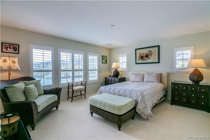 Easy as 1-2-3! If craftsmanship matters to you, this is your property. The first “Executive Residence” for sale in over 2 years. Retreat to your serene master bedroom overlooking water. Live with views from nearly every window. Enjoy rejuvenating sunsets from your personal bay front pergola, perfectly set in a large well-manicured yard. Turn your ground floor den into a 4th bedroom or use it as an office. Extra high ceilings give a sense of class & elegance. Great 2 car garage. 28 panel PV system keeps your budget in align. Relax in a peaceful community, including a park, fitness center & pool. Close to town & still your personal sanctuary.
