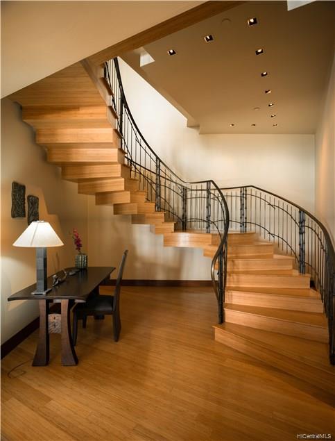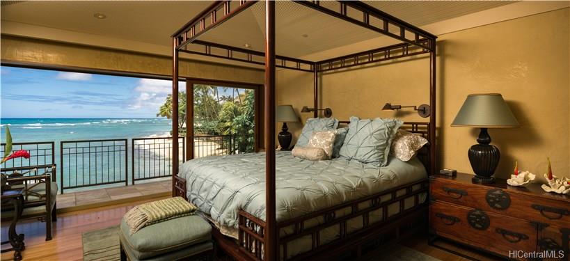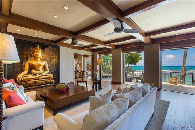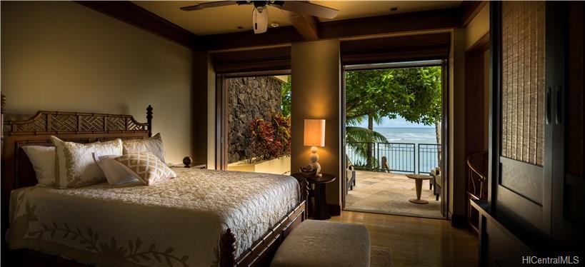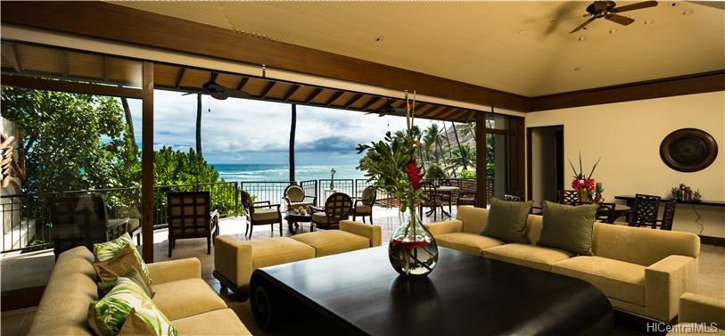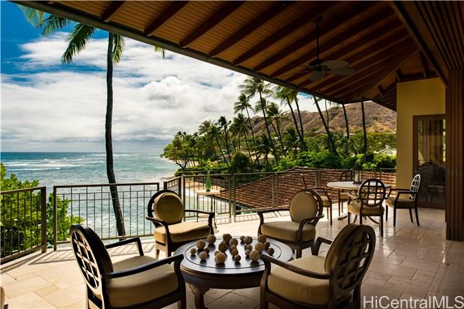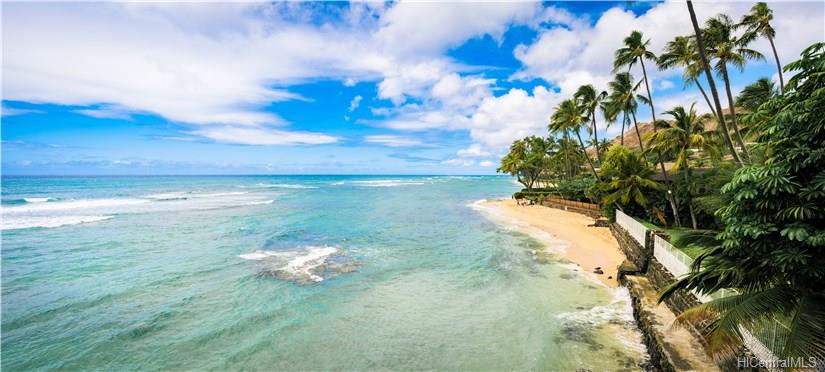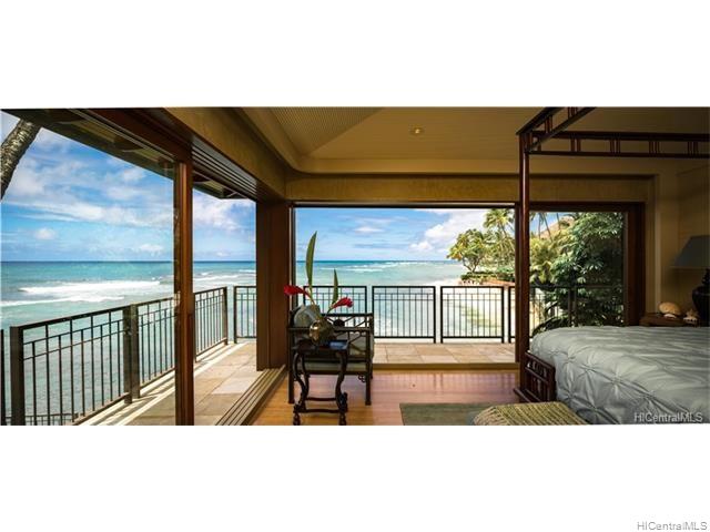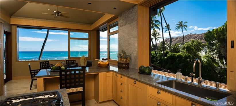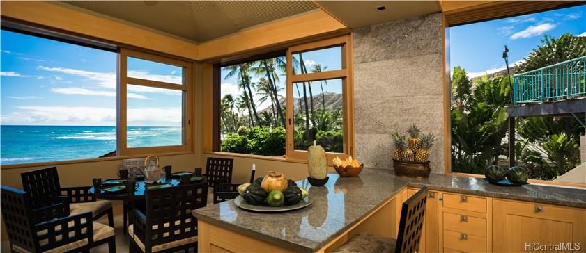 Elegant multi-level contemporary oceanfront home near Doris Duke’s Shangri La Estate with a gracious interior that opens onto terraces with some of Honolulu’s finest views of an azure cove, coconut lined white sand beaches, the surf, sunsets and Diamond Head. A statement making, yet intimate house, with a stunning interior, just right for entertaining or hiding away. Featured in Forbes Magazine and Architectural Digest. Private deeded beach access to one of Diamond Head’s finest beaches. Located at the end of a private street. Close to the shopping and restaurants of Kahala and Waikiki.