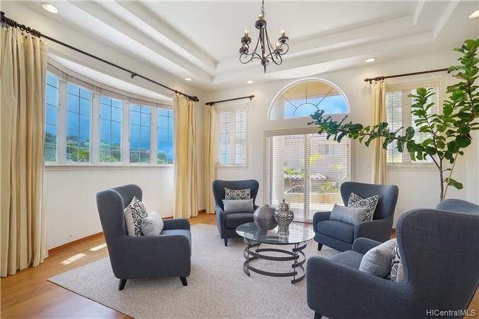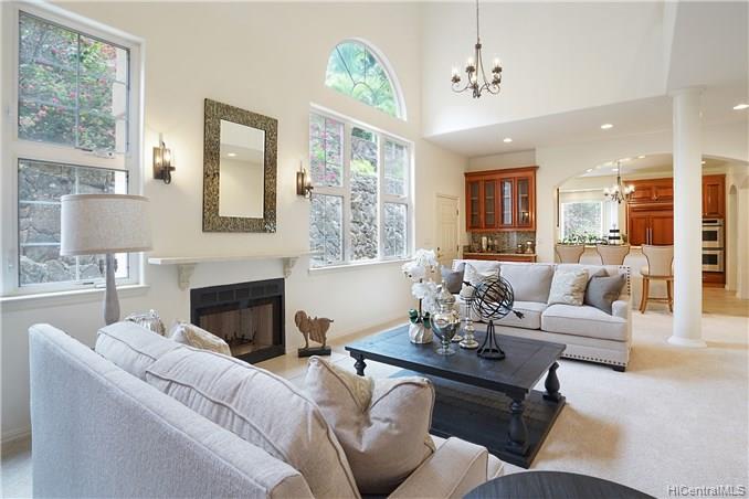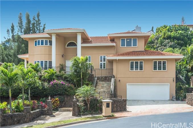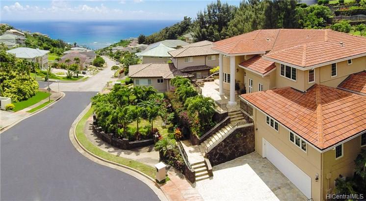 BEAUTIFUL STEEL FRAMED AND CONCRETE RESIDENCE in a secured and guard gated community above the Kahala neighborhood. Positioned at the end of a cul-de-sac. High quality construction. Nearly $1M in exterior improvements alone to grade the lot, erect rock-moss retaining walls throughout and complete with flagstone decking and a curbside garden. Listed below replacement cost.