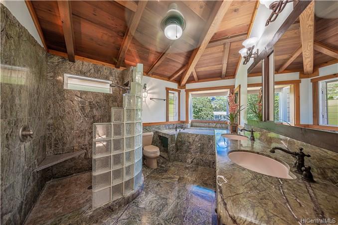 Major Price Change. Tucked away in the breathtaking valley of Manoa is a rare hidden treasure. Majestic view surrounds the privacy on this estate, little under an acre. The beauty & majesty of this solid custom-built home are seen in its exclusive design, architectural details & finish. 4 BR, 4 BA, entertainment room, home office can be 5th BR; 4–car garage, workshop area. Outside gazebo is perfect for BBQ & family gatherings. The solid foundation w/ micropiles deeply rooted up to 15ft. deep. City has given sewer adequacy approval for more kitchens. (Buyer must do own diligence to obtain building permit.) Other features include: Large storage area, conveniently close to town, schools, shopping areas; parking available for 8 or more vehicles, ample street parking. See aerial video