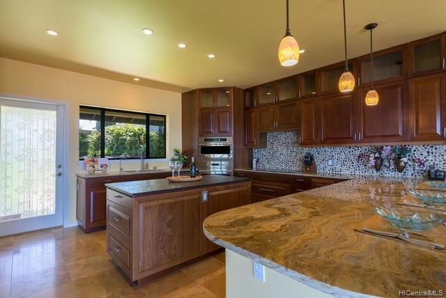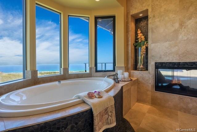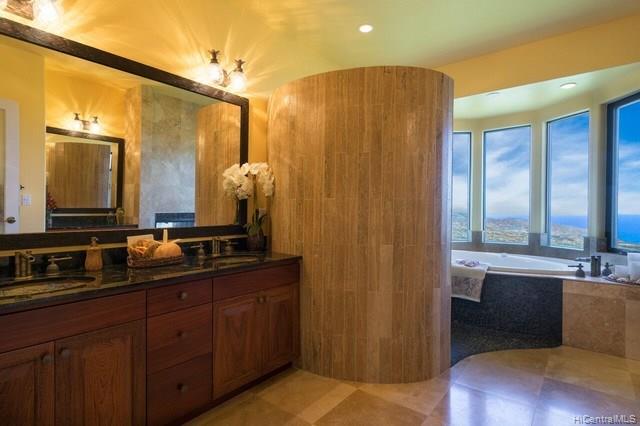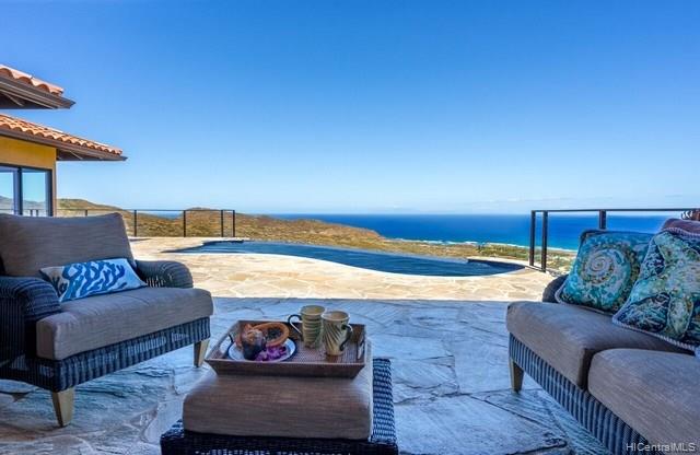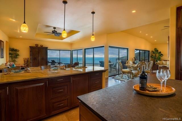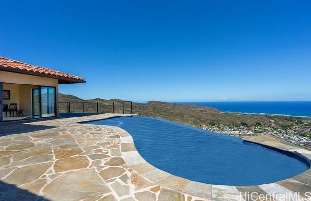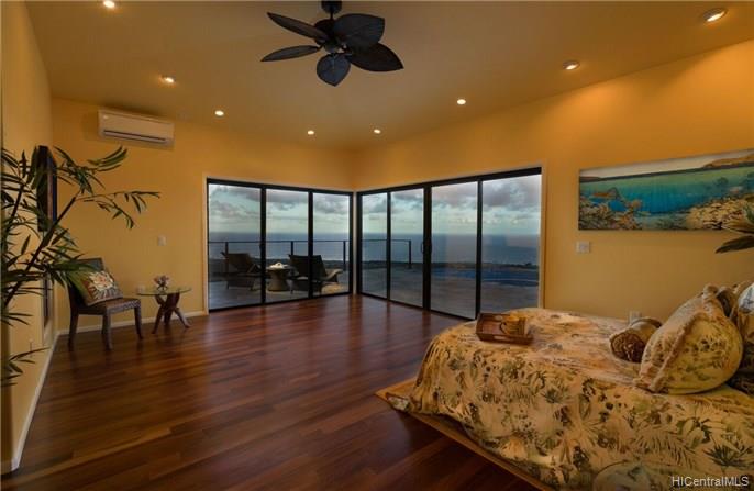 FOREVER unobstructed sweeping views from this beautifully designed home! Just recently finished construction, built and designed with globally resourced high end materials. Open floor plan with high vaulted ceilings. Kitchen boasts of custom 1.25″ thick “exotic” granite, custom solid cumaru wood cabinets and solid cumaru flooring through out. Master suite features dramatic ocean views, 2 way viewing electric fireplace from master bed and bath. Over 2000 sq ft of build-able space under the home. Relax and Enjoy the sparking ocean views from your Getaway spa bath with Six foot massaging “infinity soaking tub. The list goes on and on so a detailed list of all features provided.