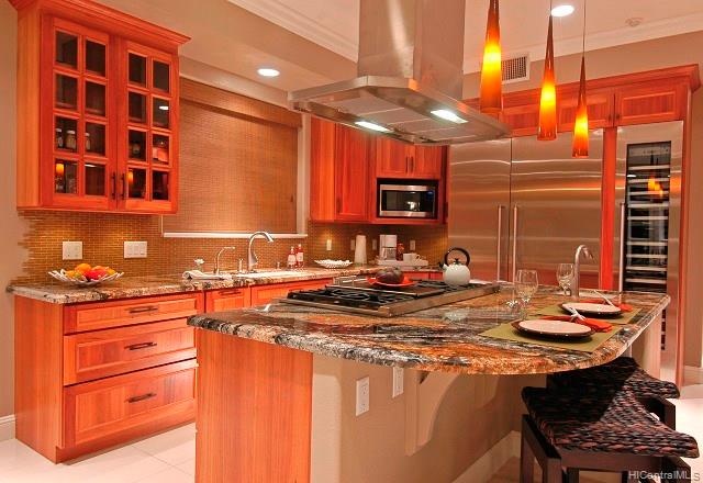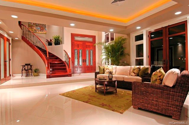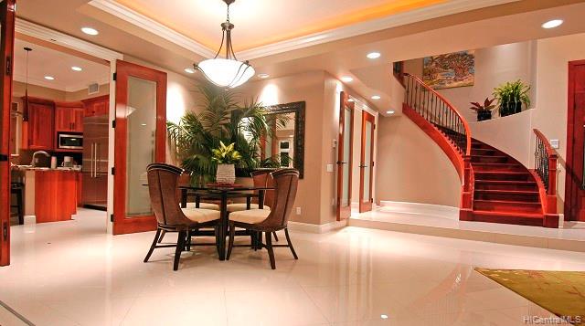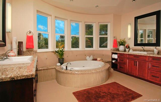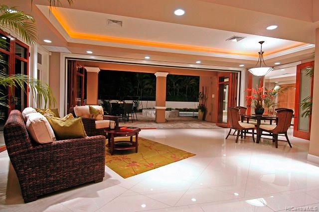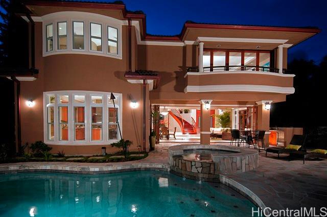 Beautiful new contemporary on the “beachside” of Kahala Avenue – walk out your back gate & be on the beach in 2 minutes. Great floor plan w/lots of drama are the hallmarks of this stunning home. German engineered lanai doors, pool, spa, great room, cozy office, sunny kitchen, large master suite w/spa bathroom, upstairs work space, fully landscaped and gated – you will not be disappointed with the details of this home!