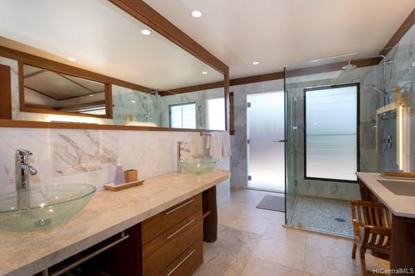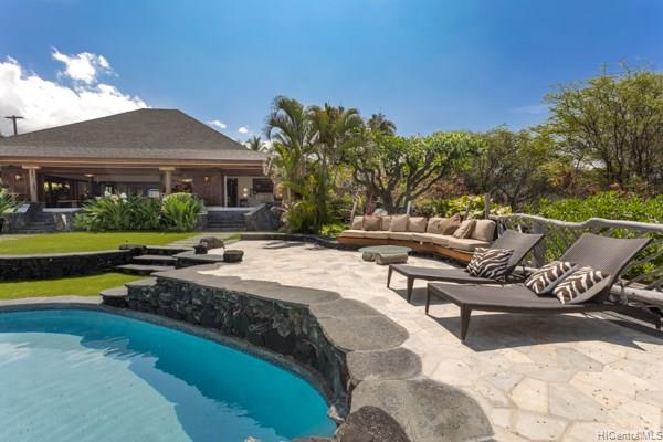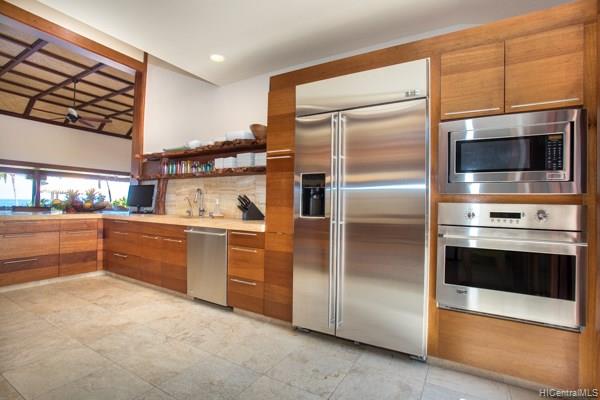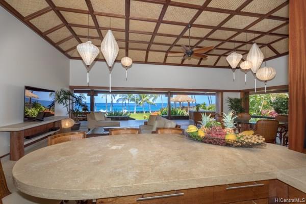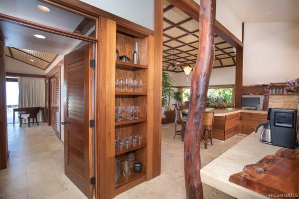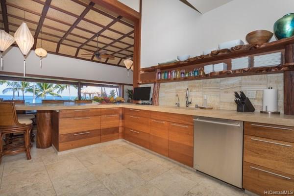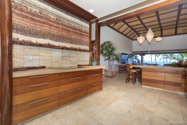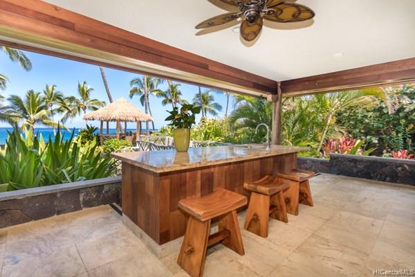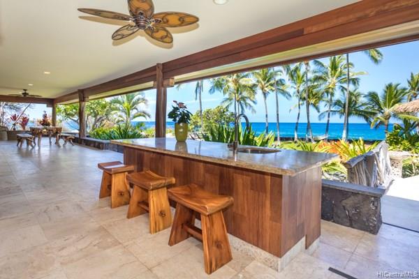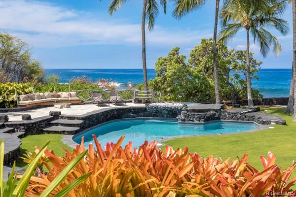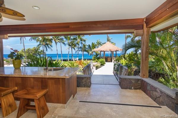 A Private and Serene location. This beautifully remodeled 4 bedroom 4 bath Hawaiian style home embodies indoor-outdoor luxury living at its best! Huge Great Room opens to wrap around lanais facing dramatic ocean frontage. Coconut palm studded yard, with well designed pool and spa area. Inside you find an open Kitchen design that is back lit by beautiful Onyx walls and huge solid Travertine countertops for food and dining.This kitchen layout assure’s your enjoyable evenings. Although deemed reliable, information herein may contain inaccuracies and is provided without warranty/guarantee of any kind. Agents and buyers must independently verify any information they deem material or important to their purchase or offer price. Sq footage to be verified by an appraisal (at buyers expense).
