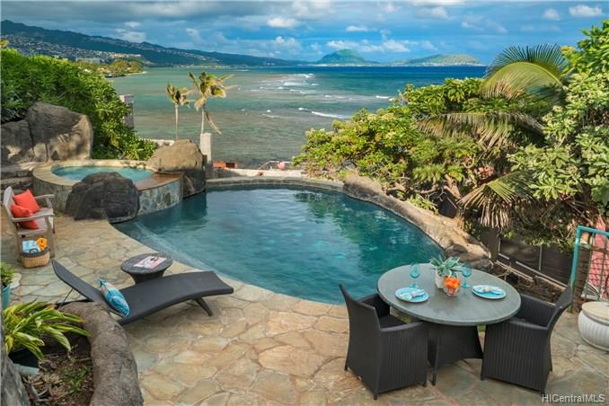 WOW the very minute you enter the winding driveway of this amazing property you will be captivated by the ocean, mountain, Koko Head, and coastal VIEWS. Located in the gated portion of Black Point with access to the ocean down a walkway, or enjoy the community salt-water pool, with ocean views dominating almost every room of this home. Single level floorplan except for the downstairs media room, which can double as a 5th bedroom, the floor plan provides privacy and open spaces for intimate or grand entertaining. The pool and spa is located down a tiered patio area large enough for dining or watching the sun or moon rise over Koko Head. Everyone will find a favorite spot on this property!