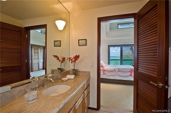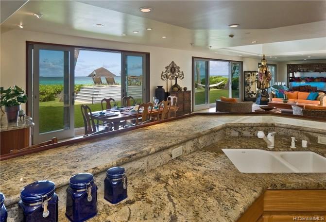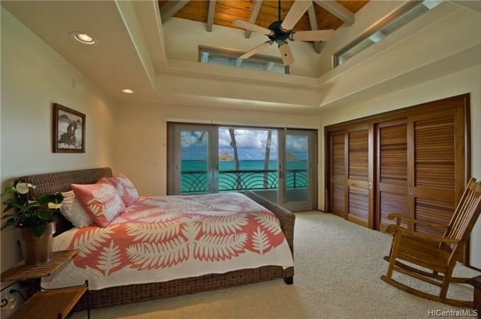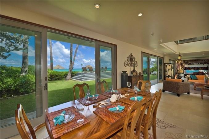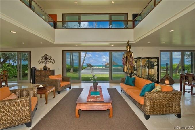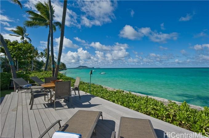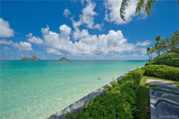 Private gated oceanfront setting. Incredible views of the Mokulua Islands and sparkling ocean highlight this custom beachfront home in world renown Lanikai. Architecturally dramatic, the craftsmanship and layout are outstanding. Large main floor entertainment area and level yard. Enjoy pristine Lanikai and Kailua beaches within walking distance – step into sandy beach directly in front and kayak along the bay. Minutes to Kailua town.